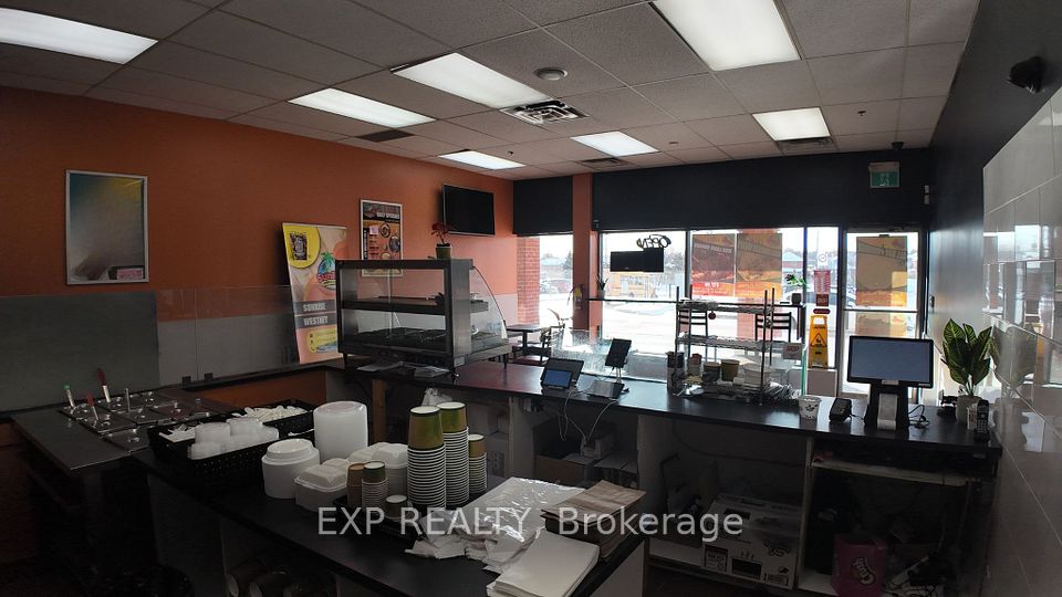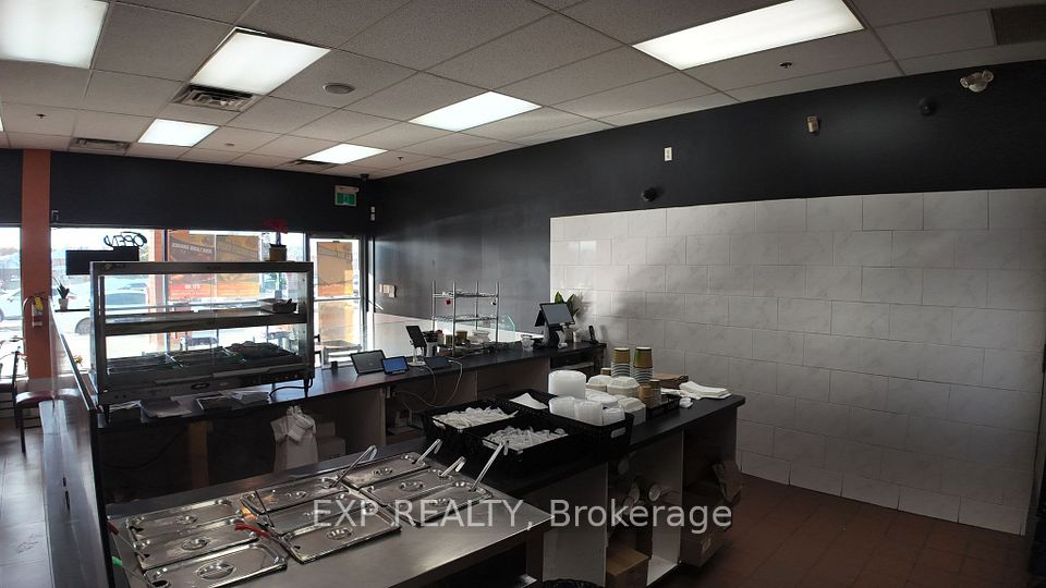 Prime restaurant opportunity in a high-traffic RioCan plaza in Ajax. Approximately 1,200 sq. ft. with excellent exposure and strong daily foot traffic. Anchored by major national tenants including Food Basics, Dollarama, BMO, pharmacy, dental, and physiotherapy, providing consistent daytime and evening activity. Low gross rent of $5,659/month, with water and garbage included. Fully built-out commercial kitchen featuring a 12-ft exhaust hood, walk-in cooler, fryers, burners, and additional equipment-ideal for a wide range of food concepts. Located in a prime Ajax trade area with strong demographics and easy access. Turnkey setup suitable for owner-operators, franchisees, or experienced restaurateurs looking to enter a proven retail node.