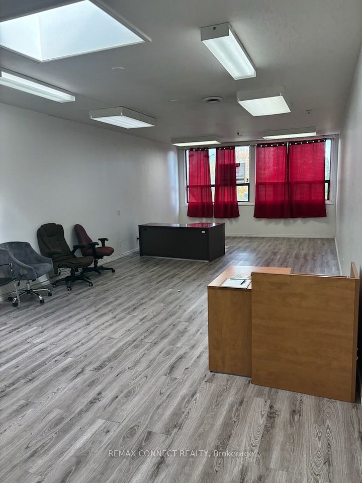 Second floor office space, faces east towards the Ajax Municipal and Library building. Heating and air conditioning at landlords expense. Hydro at Tenants expense on a separate meter. Tenant locked and keyed washrooms across the hall from unit. Tenant to carry two(2)million dollars liability and Tenant insurance. Free parking owned and operated by the Town of Ajax (surface parking only). No cannabis stores, No daycare, No bathrooms or showers in the unit. No elevator.