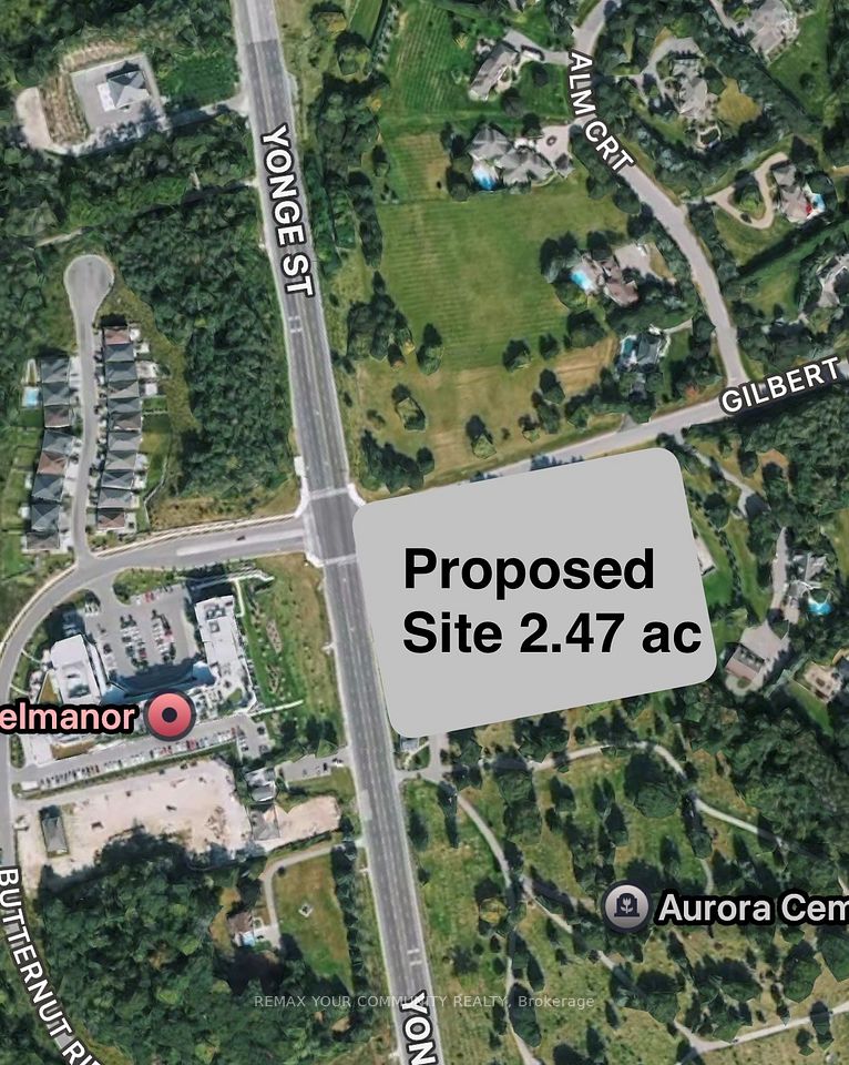 Rare opportunity for developers, or investors to acquire a prime residential development site, fronting on Yonge Street, surrounded by multi million dollar homes, and across the street from exclusive Dell Manor, a high end senior mid rise apartment building. Official Plan designates the lot Regional Corridor, which allows development entitlement for mixed use residential, including low rise buildings. The site meets all the development criteria, and mandates from both the Province, and the Town of Aurora. The seller has carefully, and with the development criteria of Aurora adhered to, drafted 4 site plan scenarios supported by the official plan, that were presented to the Town of Aurora, and well received, all are in line with the Towns vision, and outlines for growth, and development, the seller is a land developer with a long history, and good working relationship with the Town of Aurora, and can assist with site plan approvals. *** Option 1 59 Units of High end Townhomes 59 units in total, *** Option 2 One 90 Unit Mid rise apartment building , and 44 Units of High end Townhomes, 134 total units, *** Option 3 One 90 Unit Mid rise apartment building, One 80 Unit Mid rise apartment building, and 25 townhomes, 195 total units , The seller is willing to design other development options a buyer may envision, and provide per forma possibilities for each scenario The site is strategically located in the highly sought after, prime high end area of south Aurora, boasting 262 feet on Yonge St., on a transit route, traffic lights, close to every possible amenity. No Oak Ridge Moraine, historical, or conservation restrictions. Seller is willing to lease back the property until development commences, Seller is also willing to take back a mortgage. VTB, disclosure one seller is a Registered Real Estate Sales Person.