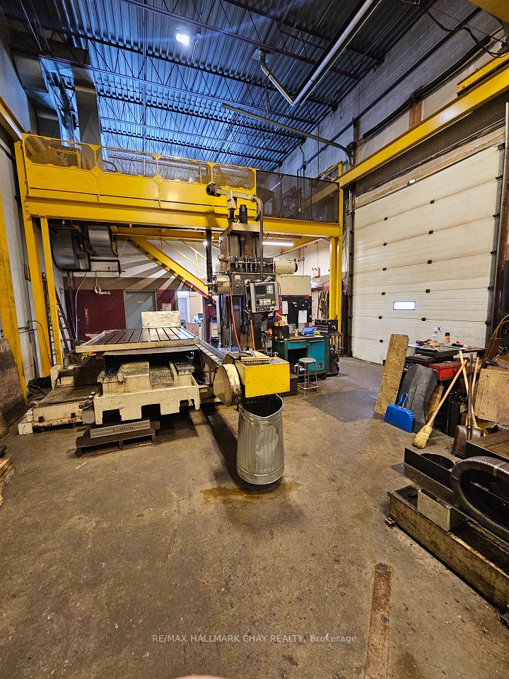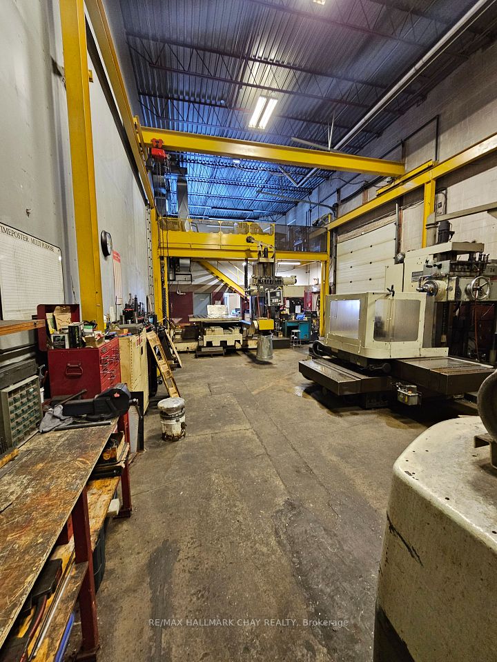Excellent 2426 sq ft Industrial end unit available in south end of Barrie. Warehouse area with 20 ft clear height, two 14x10 ft drive-in doors. 2-ton overhead bridge crane in place and can remain with unit. Front entrance area with office/staff room and washroom. Bonus approx. 400 sq ft windowed mezzanine. Current tenant's equipment in place will be removed prior to possession. Easy access to Hwy 400. TMI @ $5.50 psf.