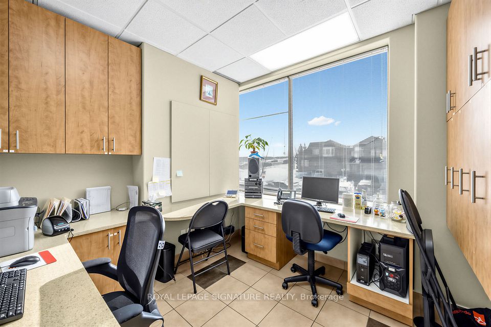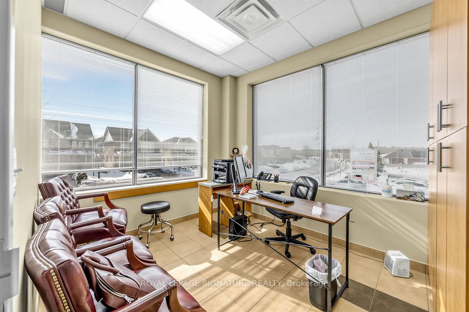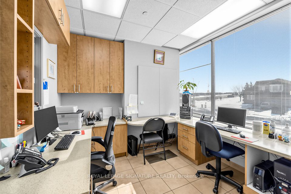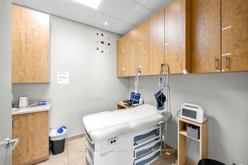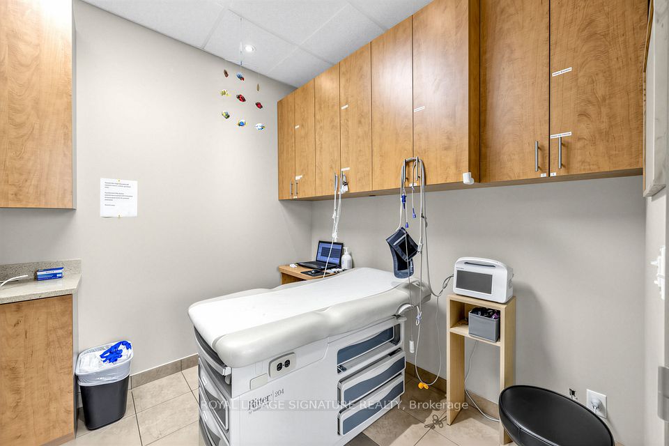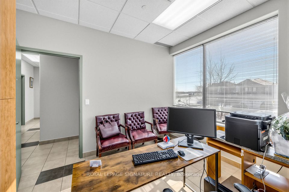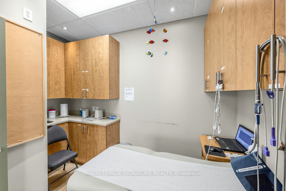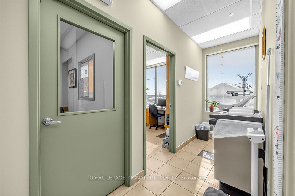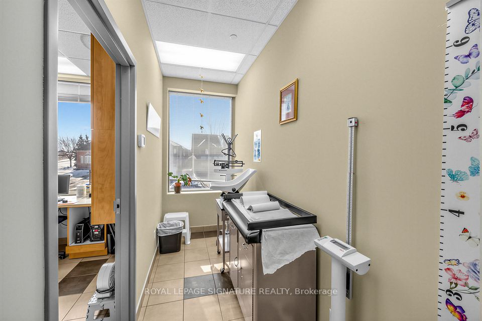 Bright, professional and well-appointed corner unit ideal for a medical specialist or general office use. Currently configured as a turnkey medical office featuring three private patient rooms, a welcoming reception area, and a spacious waiting room. The unit also includes an ensuite washroom and kitchenette for added convenience. Enjoy abundant natural light through large west-facing windows - most offices benefit from a window view. Positioned on a high-traffic corner, this property offers excellent visibility and accessibility with ample on-site parking for staff and clients alike. Situated within a thriving medical hub alongside complementary tenants including a pharmacy, large family practice and medical labs, making this an exceptional opportunity for any specialist looking to establish or grow their practice. Flexible zoning permits both medical and general office use.