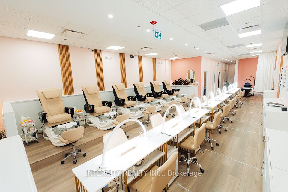 Turnkey Nail & Beauty Salon in Prime Location! Well-established, fully equipped salon featuring 8 nail stations, 6 pedicure chairs, and 1 private treatment room. Additional glass beauty cubicle currently rented at $1,000/month providing steady supplemental income. Modern interior with stylish reception area, professional equipment, kitchenette with laundry, staff storage, and washroom including AODA-compliant facility. All furniture, fixtures, and equipment included. Dual entrances with ample free parking. Located in a high-traffic area surrounded by new developments, offering strong walk-in exposure and loyal clientele. Trained staff may stay for smooth transition.
