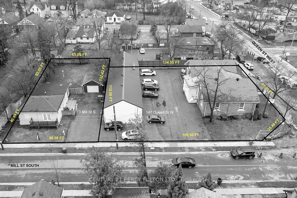 Builders and Investors must see! Located on the corner of Queen St and Mill St with SC-396 Zoning, presently being used as a professional office with 2,500+ sq ft of Office Space. Property has a 30' x 100' Outbuilding with 1,100 + Sq Ft of Office Space and additional Storage Space. 12+ Parking Spaces. Abutting Residential property 3 Mill St S also listed for sale to be sold with 147 Queen St W. High Traffic area steps from Gage Park and other major developments. Close to 410 and 407 Highways.
