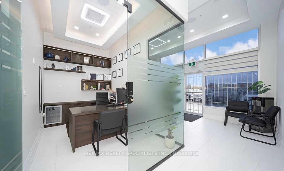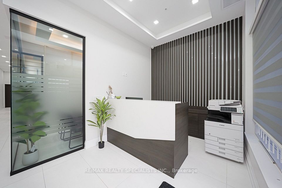Exceptional opportunity to lease a fully furnished, New, move-in-ready retail/office space in one of the city's most sought-after high-traffic plazas. Offering premium exposure, steady walk-in traffic, and excellent accessibility, this unit is ideally positioned among major banks, Home Depot, restaurants, fitness centers, and transit, Retail business-such as a boutique, phone repair shop, beauty salon, nail bar, or Professional office for healthcare services, law, accounting, real estate, immigration consulting, travel services, or insurance,. Designed with modern finishes throughout, the space features a welcoming reception area with an elegant accent feature wall, Five (5) private offices,reception area, a glass-enclosed boardroom, stylish flooring, glass & wall partitions. A well-appointed kitchenette with stainless steel appliances and a private washroom provide added convenience for staff and clients. The unit comes fully furnished with desks, ergonomic chairs, front desk, boardroom table and chairs, and kitchenette appliances-offering a seamless, professional turn-key setup. Perfect for a wide range of professional and service-based businesses including legal, accounting, real estate, mortgage, insurance, healthcare/wellness, immigration, travel services, boutique retail, and more. Additional $140,000 applies for the existing high-quality custom interior build-out. A rare chance to secure a premium, ready-to-operate space in a top-tier commercial location.