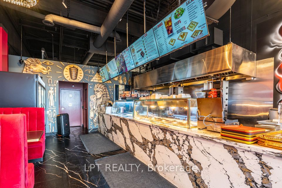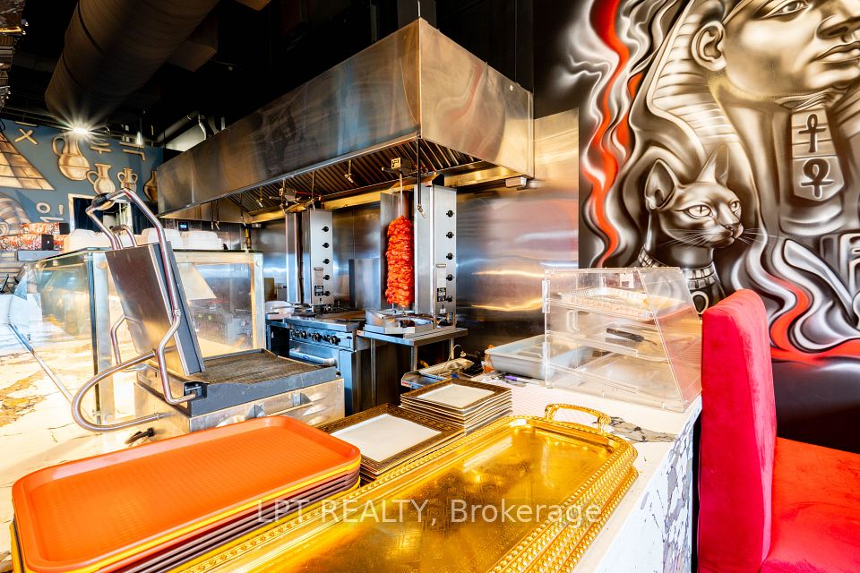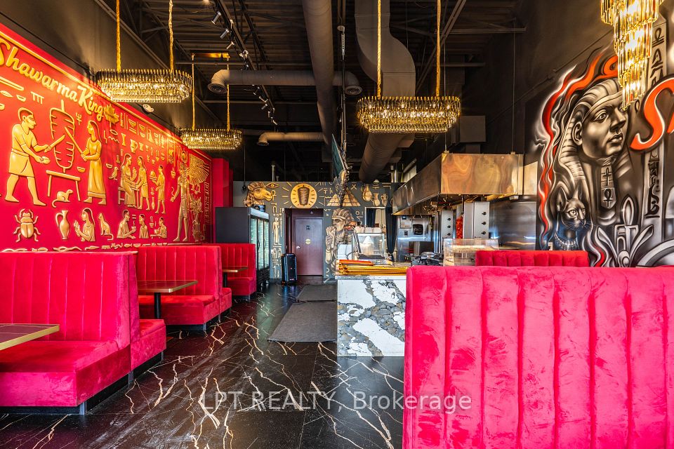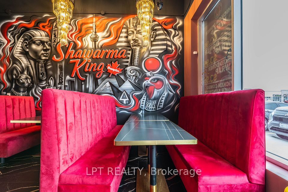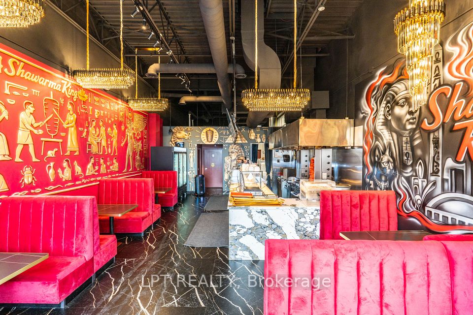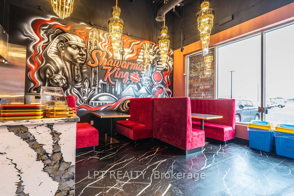 Opportunity to start your own food and restaurant non franchise business in the new build Shawarma King with high end impressing finishing, sale include all the new chattels and equipment, decent space 40 to 50 seats, rare to find 2 luxe finishing washrooms gross rent $6700 include TMI., LCBO licence, high sales with the known famous middle east cuisine, a lot of parking in the booming plaza.