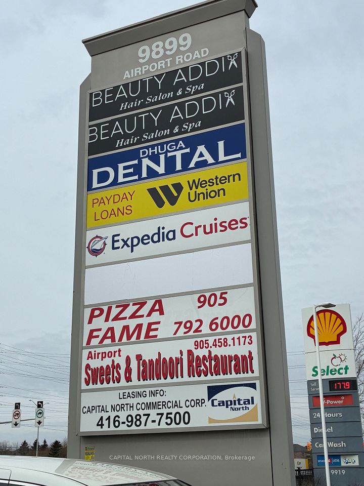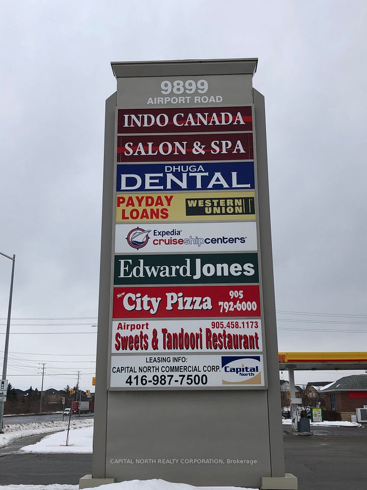 The Site is situated at the southeast corner of Airport Road and Castlemore Road in Brampton, offering prominent visibility and high traffic exposure from Airport Road. The plaza is adjacent to a Shell gas station and accommodates a variety of permitted uses. Current tenants include a Sweets & Tandoor Restaurant, City Pizza, Expedia Travel, Payday Loans, Dental services, and Hair & Salon Spa.