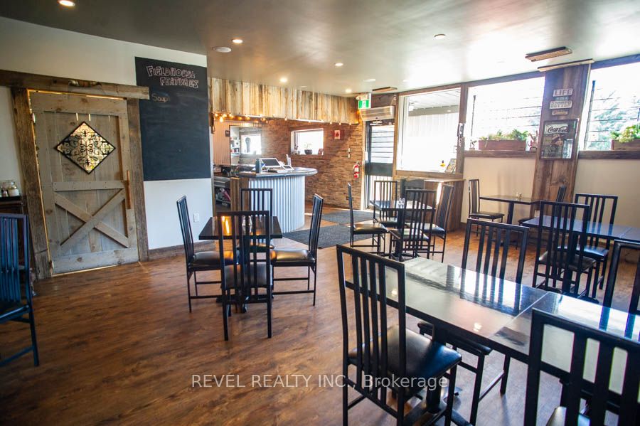 An exceptional opportunity awaits in the heart of Scotland. The Field House Restaurant is a well-established, family-run business known for its quality dining experience, welcoming atmosphere, and strong community presence. Proudly owned and operated by the same family, the restaurant has built a loyal clientele by focusing on fresh ingredients and consistently delivering outstanding customer satisfaction.Step inside to discover a warm and inviting interior, thoughtfully updated with a complete renovation in 2016, including both the dining area and kitchen. A striking stone feature wall anchors the bar area, complemented by a beautiful black walnut countertop-creating a natural gathering space for guests. The main dining room showcases a charming barn board feature wall and offers seating for up to 60 guests, providing both comfort and character.In 2021, an additional dining space was thoughtfully created, ideal for hosting intimate private functions and seamlessly connected to the main dining area. During the warmer months, guests can enjoy the rear patio, which accommodates approximately 20 people, with further potential to expand outdoor seating at the front of the property.The spacious chef's kitchen is designed for efficiency, offering ample room for food preparation and service, along with extensive indoor and outdoor storage. The property also includes two washrooms, all owned equipment, and generous on-site parking, situated on a sizable 80 ft x 165 ft lot.Ideally located just minutes from Brantford, this turnkey offering presents a rare opportunity to own a thriving business in the growing community of Scotland. With strong existing operations and room for future growth, this is a standout opportunity for entrepreneurs and investors alike.