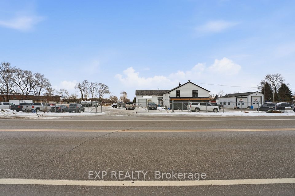 The "Gateway to West Brant." This dominant 4.65-acre commercial site features approx. 8,000 sq. ft. of multi-tenanted property and sits directly across from the Brantford Municipal Airport. It is the critical pinch-point connecting West Brant's explosive residential growth with the rapidly expanding Highway 403 industrial corridor (anchored by over 300 acres of acquisition).The site acts as the strategic access "key" to unlocking a potential 25+ acre contiguous commercial assemblage and a book-end play. Flexible C2 (General Commercial) zoning within the airport overlay permits a massive scope of uses: retail power centre, QSR, medical, automotive sales/service, heavy equipment, and logistics operations. The sheer scale of this 4.65-acre footprint easily accommodates major site redevelopment, green energy initiatives, with EV charging hub & more. Currently operating at 90% occupancy, the diverse tenant mix (industrial shops, retail, office, and a residential apartment) provides strong holding income during the planning and entitlement process, with immediate value-add potential for additional revenue. Exceptional logistics routing: under 10 minutes to Hwy 403, offering seamless access to the Hamilton, Cambridge, and Woodstock markets. Ideal for institutional developers, REITs, or major owner-users requiring unmatched arterial frontage.