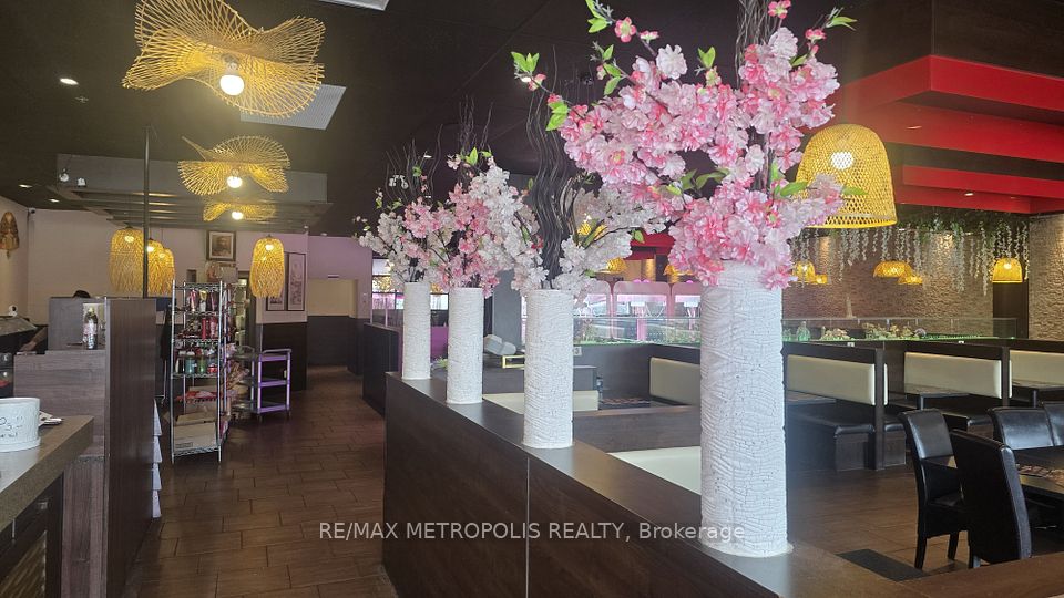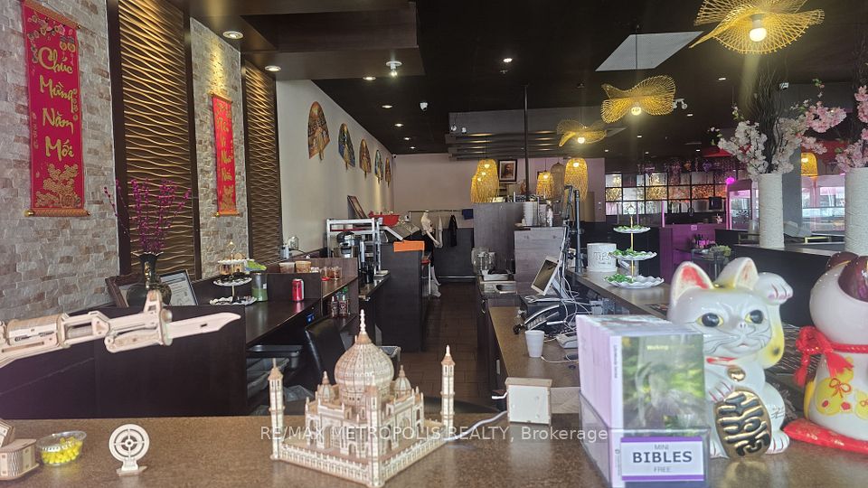 Established Vietnamese cuisine restaurant in the busy King George Plaza, Brantford - open to rebrand, surrounded by anchors like Food Basics, Tim Hortons, and a medical centre. Known for its authentic menu, strong income, and loyal clientele. This 4,045 sq. ft. restaurant offers 150+ seats and three washrooms (two customer accessible + one staff). Features a designated bar area with potential to add liquor service, and a large storage room for dry goods and takeout supplies. Extensive leasehold improvements include a 25-ft hood, 6-burner stove, 4 hot pots, walk-in cooler & freezer, and many more, along with $150K+ in premium stainless steel equipment and luxury finishes. Ample plaza parking, 1.5 years remaining on lease with a 5-year renewal option. opportunity to own a thriving Vietnamese restaurant in one of Brantford's busiest commercial plazas!