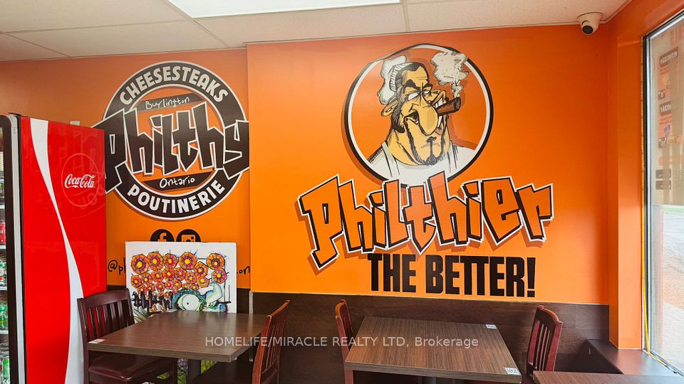 PHILTHY PHILLY'S Business in Burlington is For Sale. Located on Fairview St near Guelph Line, in a high-traffic commercial area surrounded by residential neighborhood. Close to QEW, Burlington Centre Mall, offices, banks, and major retail plazas. Operating since 2022 with stable sales and growth potential. Avg. Monthly Sales: approx. $56,000-$60,000. Rent: $4,708/month incl. TMI, HST & water. Lease Term: existing until July 2029 + Option to Renew, Royalty: $500/monthly.