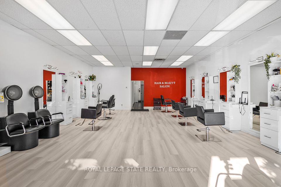 Turnkey Hair Salon for Sale, in a prime location. Fully equipped & move-in ready. Discover an exceptional opportunity to own a bright, modern, and beautifully maintained salon with over 1350 sq. ft. Located in a busy, well-established plaza with ample customer parking. Surrounded by thriving neighbouring businesses and offering convenient highway access, this salon provides the perfect environment for stylists, entrepreneurs, or investors looking for a seamless, ready-to-operate space. This open, airy layout features nine fully equipped hair stations with seven large mirrors. A generous workspace along with two smaller mirror stations and two well-positioned wash stations to ensure smooth client flow. A warm and inviting reception area welcomes guests with its bright, spacious feel, while neutral paint tones throughout the salon create a professional backdrop suitable for any branding style. The unit also includes a private spa room, ideal for esthetics or additional services, and a compact kitchenette for staff convenience. Offered as an asset sale, this salon allows you to step directly into a professionally designed space, without the time or cost of building from the ground up. Perfect for launching a new salon, expanding your brand, or relocating to a high-visibility, established area, this turnkey opportunity is ready to support your success from day one.