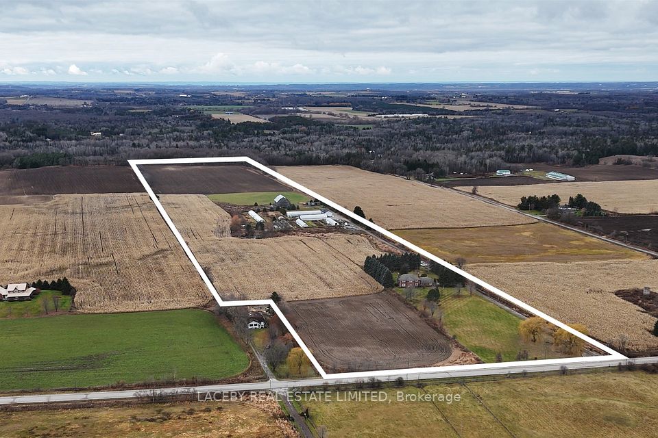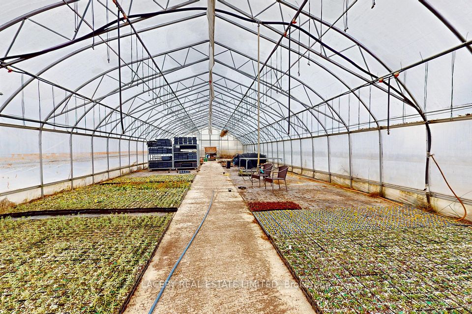 PLANT YOUR DREAMS HERE! A Landscaper's and Farmer's Dream - 46 Fully Usable Acres of Opportunity. This exceptional property, formerly home to a thriving nursery and agricultural business, offers 46 +/- acres of fully usable land, with all fields currently being farmed, making it a rare turnkey opportunity for farmers, growers, landscapers, or anyone looking to build a thriving agricultural enterprise. The spacious 5,000 +/- sq. ft. (total living space) two-storey home features 4 bedrooms, 4 bathrooms, a main-floor office, partly finished basement with separate entrance, hardwood floors, fireplace, separate family, living and dining rooms along with an in-ground swimming pool, combining comfort with functionality. Supporting the operation are a 2,100 sq. ft. workshop with industrial overhead door and 200-amp separately metered service, a bank barn, pond, and over 40,000 sq.ft. of multiple poly-dome greenhouses equipped with irrigation systems (in various conditions). Minutes to Hwy 48 and 400 series highways. With a farm tax rebate in place and all infrastructure established, this property represents an extraordinary opportunity to live, work, and grow on a large, productive property. This is your chance to sow the seeds of success ..... don't let this one grow away!
