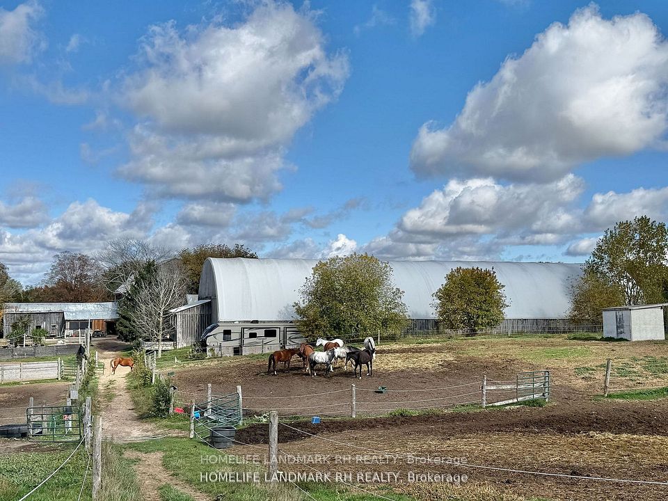 Outstanding Equestrian facility in Prime York Region location- East Gwillimbury. just 10 mins from Hwy 404! Total 43 Acres w/ majority flat and open land. Partially wooded w/large private freshwater pond. 60 Ft x 100 Ft. indoor Arena with Viewing Room. 9 Stall Coverall Bar & 11 Stall bank Barn. Additional storage shed beside house can be converted to garage. Outdoor fenced arena & multiple outdoor fenced paddocks. Large open grass field for Polo w/exterior walking path for horses. 10 Min to Hwy 404 & 5min to Mount Albert town for shopping, supermarkets, restaurants, golf & more!