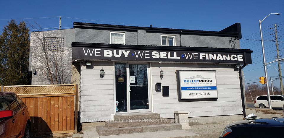 Renovated, Established, OMVIC approved automotive dealership on a prime corner of Steeles avenue 1km off of the 401 at Trafalgar. Heavy Daily Traffic Flow with sustained commuter traffic and exceptional exposure. Huge 50+ car lot with 2 separate street entrances. Stand alone dealership building. Foyer area with kitchenette, washrooms & storage. Main office suitable for min 2 desks & a separate manager or closing office. Another Separate Office with Storage and Washroom. All recently renovated. The Brand New Renovated and Vacant Residential upper 3 bed apartment with one full bath, large kitchen and pantry, good storage area and with a separate entrance and parking is Ready for Your Chosen Tenants. Great Buy and Hold Investment Opportunity. Good Current Rent and Great Future Development Value. Commercial Corner Property Just Under Half an Acre located on a Prime Corner of Steeles Avenue just West of Trafalgar Road. Less than 1 km to Trafalgar & 401 and the Outlet Mall and Five Minutes to the Milton 401 Business Corridor. Two Storey Commercial Property with Newly Renovated Residential on Second Floor. Recent City Water and Sewers. Make this Property the Linchpin of Your Development Plans for the Area. Buy now with Rent Paying Tenants with intent to Develop a Future Commercial Enterprise. This Unique Opportunity for Commercial Holding at the edge of the huge Prestige Industrial developments in the area.
