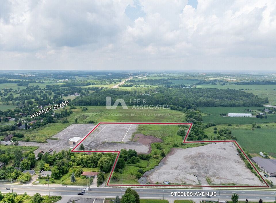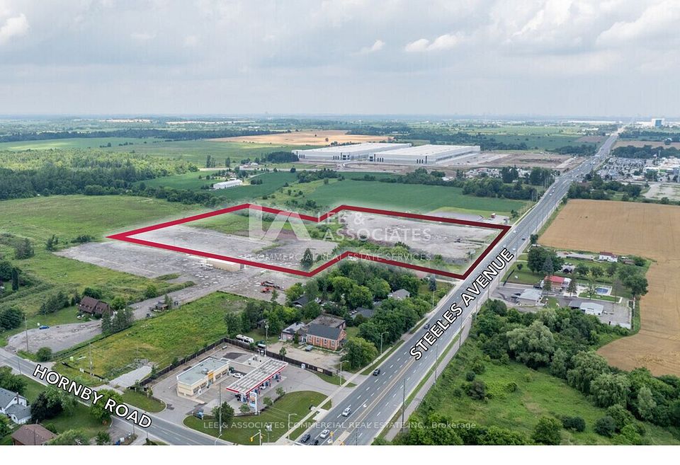 Exceptional opportunity to acquire 14.44 acres of industrial development land within Halton Hills Premier Gateway Employment Area. Located on the north side of Steeles Avenue just west of Hornby Road, the site offers approximately 8.66 acres of net developable land, with the balance regulated by Conservation Halton. Designated for Prestige Employment Industrial uses under the Towns Secondary Plan, this parcel is ideally suited for logistics, warehousing, and industrial users seeking scale in a growth corridor. Full municipal servicing (water, sanitary, storm} is available along Steeles Avenue. Surrounded by leading industrial occupiers and new development, this is a rare opportunity to secure a large, policy-supported site in one of the GTA West's most strategic employment nodes.