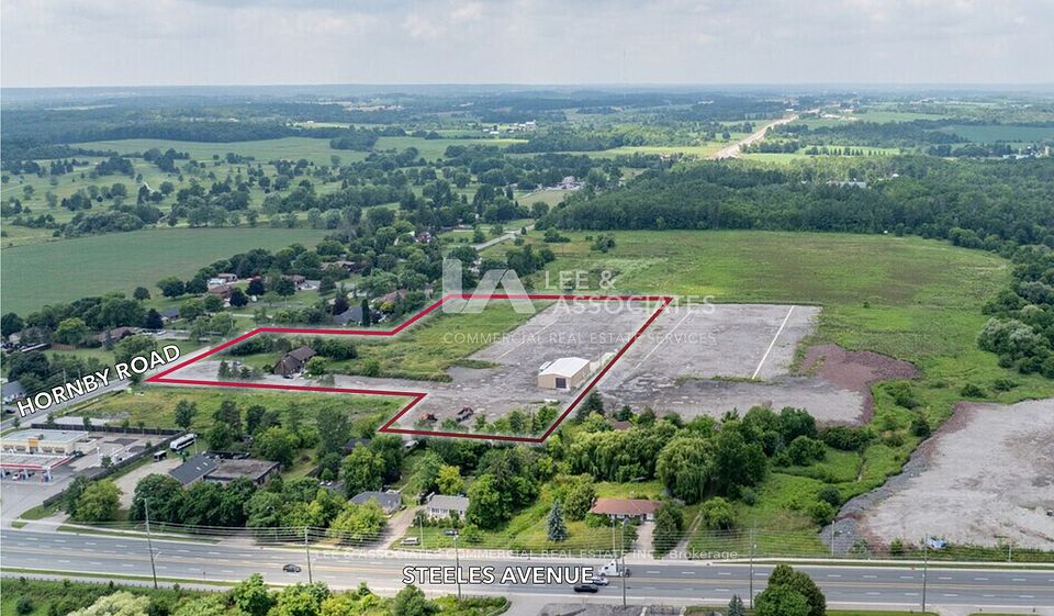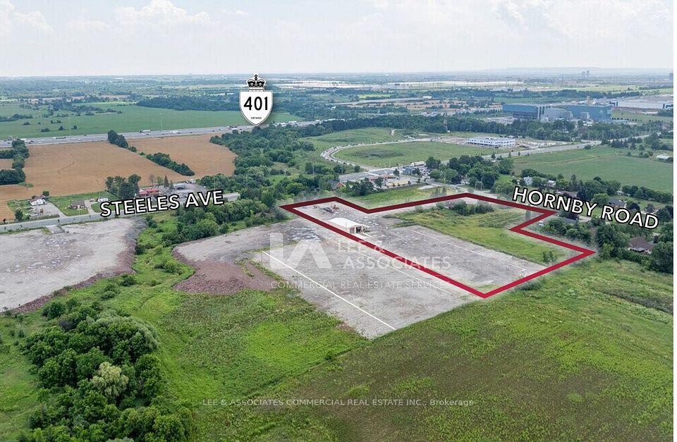 Premium 7.26-acre industrial development parcel located within Halton Hills'" Premier Gateway Employment Area. Entirely developable and previously improved as a truck yard, the property offers flat, graded land with immediate access to full municipal services along Hornby Road. Designated Prestige Employment Industrial under the Town's Secondary Plan, this site is ideally positioned for future industrial or logistics redevelopment. With close proximity to Highways 401 and 407, and surrounded by institutional-grade developments and infrastructure, 8029 Hornby Road presents a rare opportunity to secure scale and long-term upside in one of the GTA West's fastest-growing employment corridors.