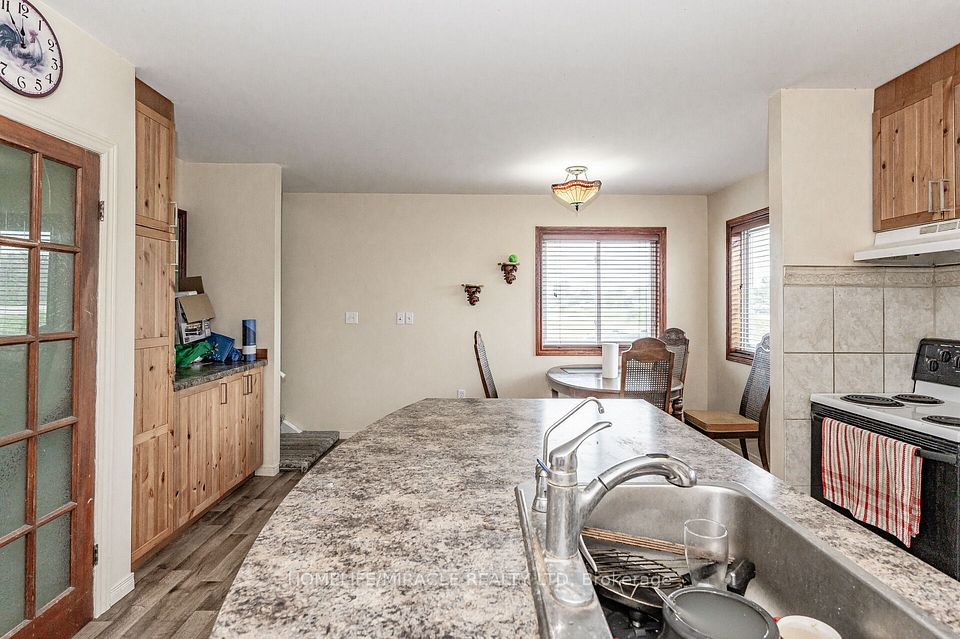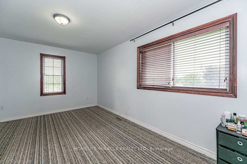 Located on Highway 6 with quick access to Highways 401 and 403, this property offers an excellent commuter location just minutes from Burlington and Waterdown, with convenient access to amenities and services. Set on approximately 3 acres, the property provides ample space for farming and a variety of agricultural opportunities. The home features 4 bedrooms, including one bedroom on the main floor, along with two full bathrooms and an additional 4-piece bathroom for added convenience. The laundry room is currently located in the basement, while the main-floor laundry area may be converted into an additional bedroom if desired. The spacious main-floor primary bedroom extends from the front to the back of the home, offering a private and comfortable retreat. The large kitchen features an island and generous workspace, ideal for both everyday living and entertaining. New flooring installed in 2022 adds a fresh, updated feel throughout. The family room is filled with natural light, creating a warm and inviting living space.