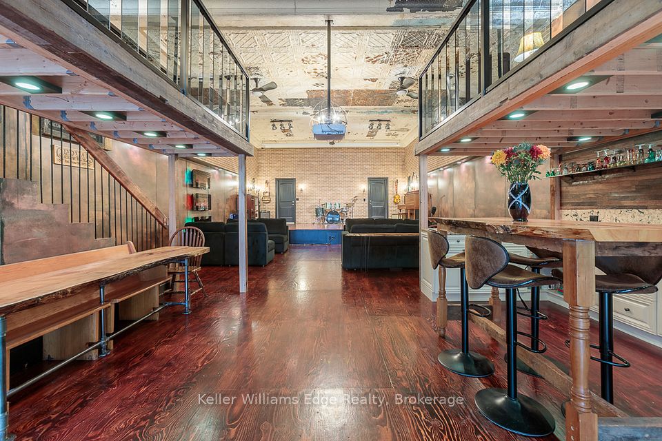 New meets Nostalgia in this rare property! Located only 2 blocks from Tim Horton's Field, 7 mins from Hamilton Harbourfront, blocks from 2 schools & Bernie Morelli Community Centre. Starting in 2019 this former church has undergone full renovation. Strategic upgrades & careful preservation resulted in an incomparable find. Greeted by 14ft ceilings with original tin tiles, open concept living & dining areas and stage . Entertainment space continues with walkout to 400 sqft tree covered deck. Above is a spacious loft & access to 2nd floor bedrooms & lastly the gracious 3rd floor primary suite with 9ft ceilings. This suite is complete with fireplace, 4pc ensuite, dressing room with custom cabinetry & stackable laundry. Floor ceiling windows take you to 500 sqft rooftop patio with stadium & scenic views of escarpment in background. Lower level has large rental suite, full kitchen, open concept space, separate entrance. **Lower level refers to basement.