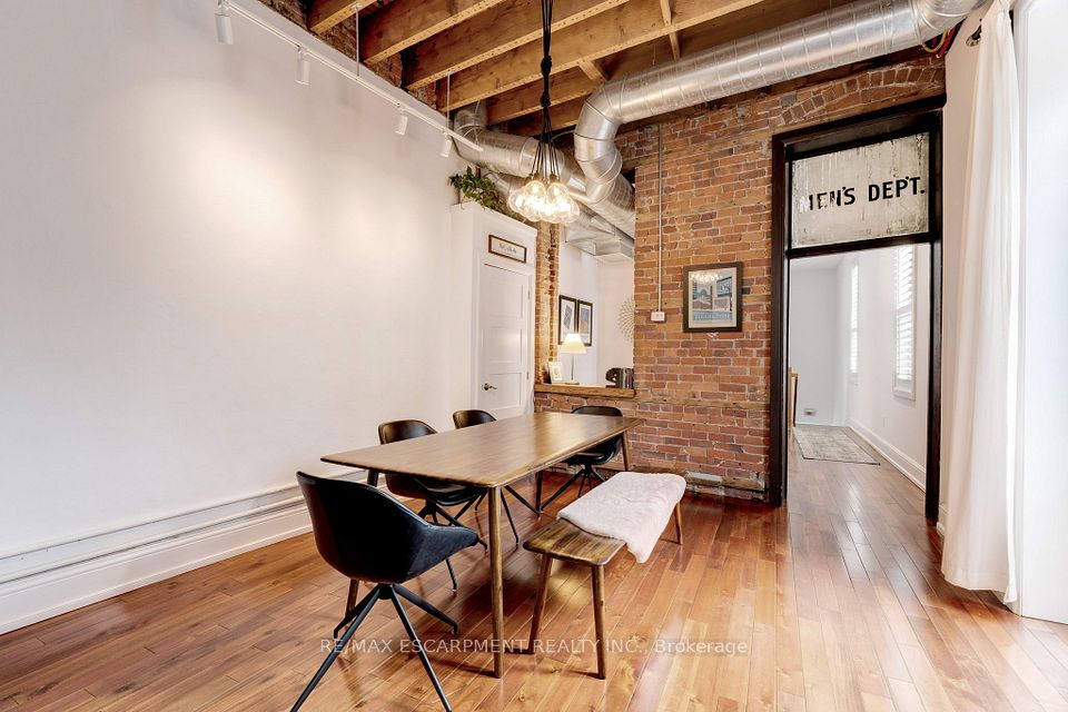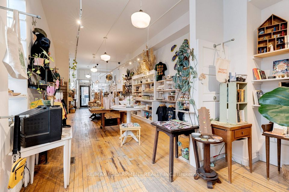 Own a piece of Hamilton history in this iconic 3 storey, mixed-use corner building, part of the historic Copp Block (built 1880-1881). The ground level boasts a spacious commercial/retail unit with front and side entrances-Currently leased to an established retail tenant on a month to month lease, delivering immediate income and flexibility to a purchaser. Above sits a stunning 2-storey residential apartment, offering 3 bedrooms and 2 full bathrooms and was fully renovated in 2013/2014 by CGS Architects. Enjoy the open-concept layout flooded with natural light, soaring12-13 ft ceilings, hardwood floors throughout, and an impressive ~350 sq ft patio off the third floor-perfect for downtown views and entertaining! Separate hydro, gas, furnaces, and A/C serve residential and commercial units independently. A full basement (partially finished and used by the commercial tenant) adds storage/expansion potential. Prime location on the future LRT route, steps from shops, restaurants, cafes, theatres, and International Village amenities. Nearby parking available. Ideal for live/work setups, investors seeking cash flow, or owner occupiers enjoying luxury living with rental income.