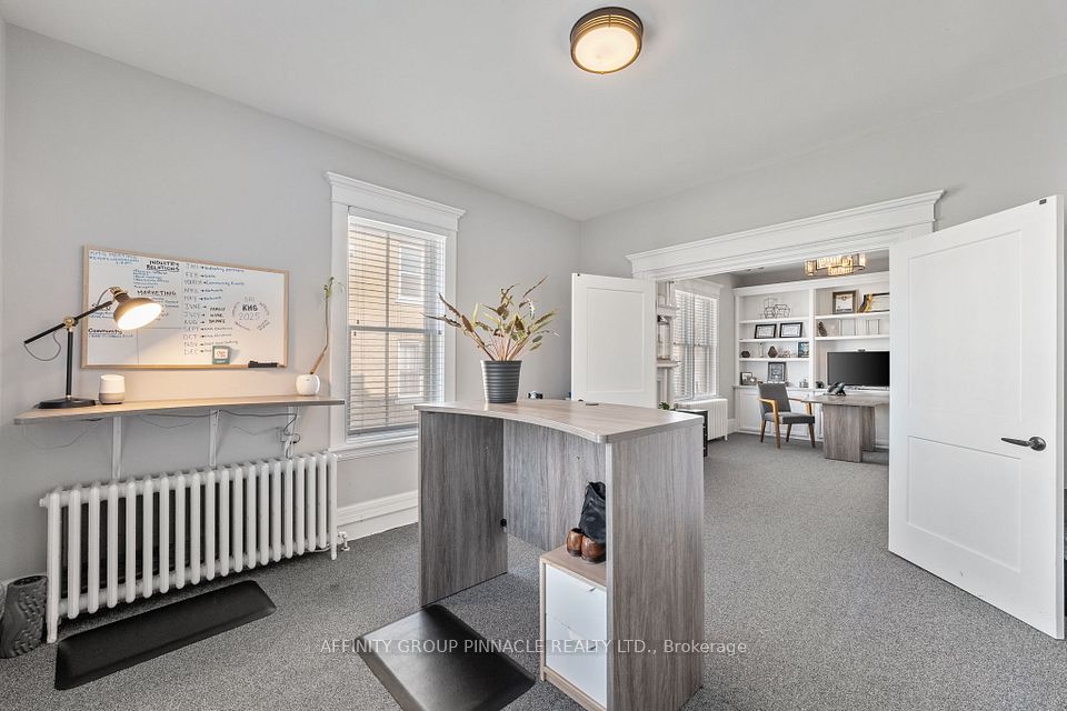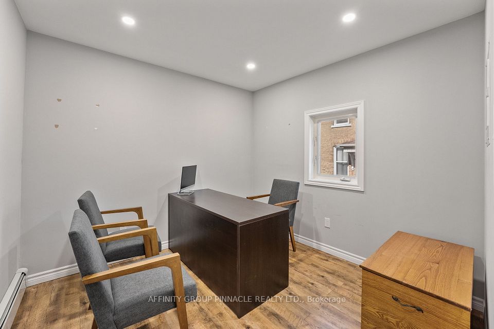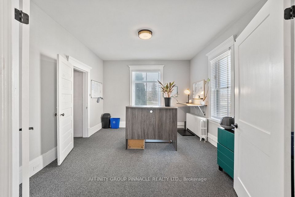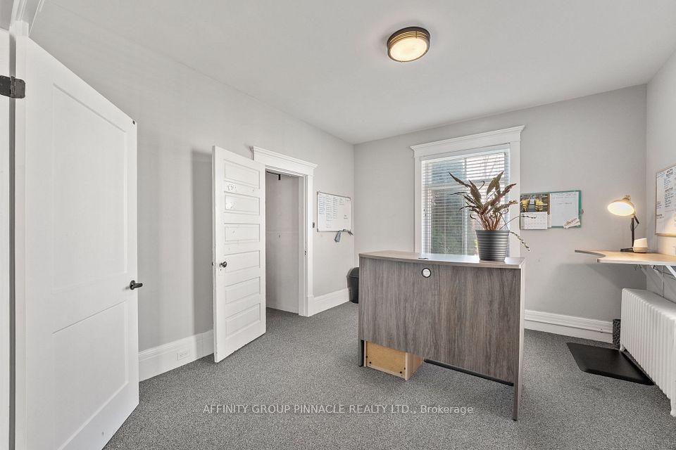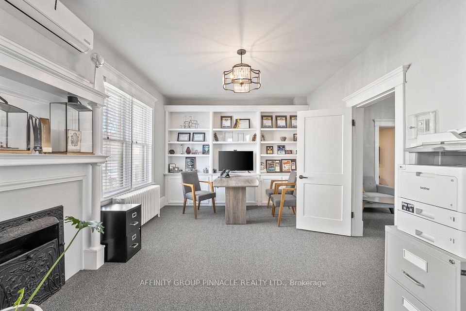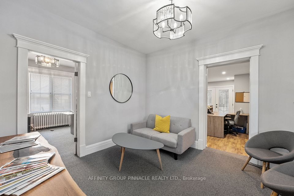 Welcome to this versatile mixed-use Building (MRC Zoning) with modern finishes and exceptional visibility, offering a unique opportunity for business owners, investors, or live-work entrepreneurs looking for an office space or studio. The main level is thoughtfully designed with a warm and inviting reception area, complete with a stylish 2-piece bath and convenient wet bar. Two private office spaces provide quiet, focused work environments, while the spacious, open-concept area is ideal for team collaboration or client meetings. With double doors, this versatile space can also serve as additional private offices if needed. Downstairs, the finished basement includes a full 4-piece bathroom and a flexible area thats ideal as a staff lunchroom, storage space, or bonus workspace. Upstairs, discover an oversized 1-bedroom, 1-bath apartment. With its own private entrance, this self-contained unit boasts a spacious living area, in-suite laundry, a fabulous finished loft space and separate hydro meter. One gas/water meter for whole building. Additional highlights include wheelchair-accessible rear entry, ample client parking, and a professional yet welcoming atmosphere throughout. Don't miss this rare opportunity to own a stylish, multi-functional property thats as practical as it is impressive.