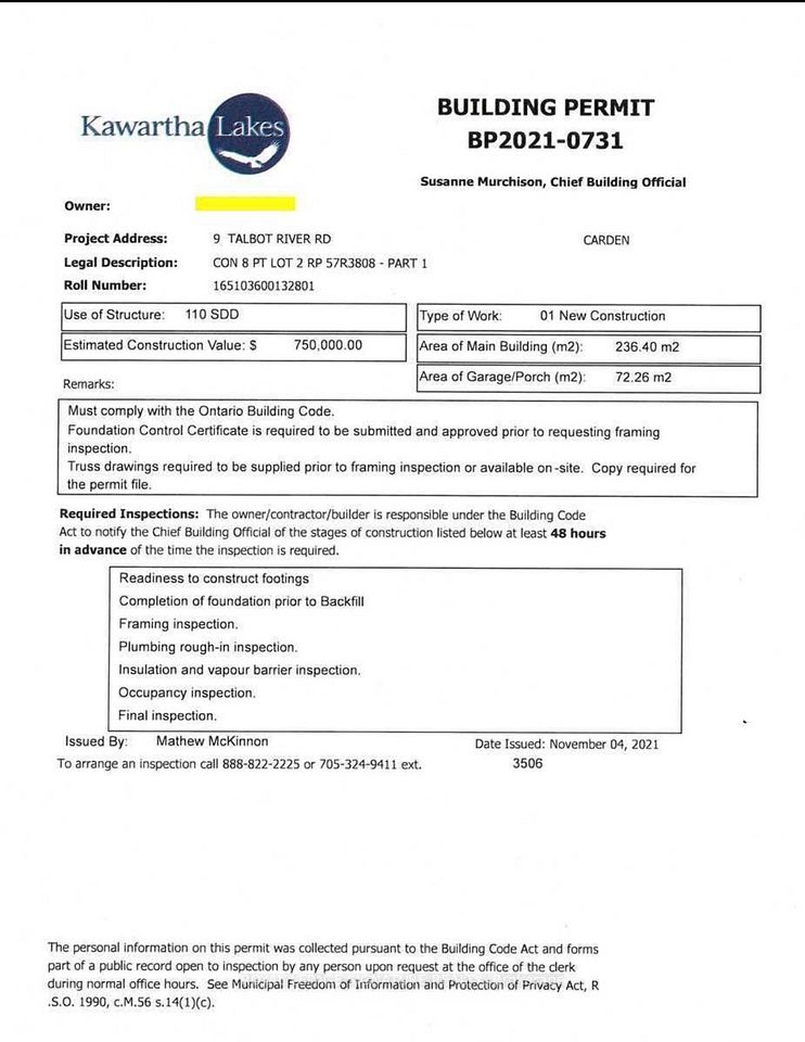 Cross Street: Kirkfield Rd & Talbot River Rd