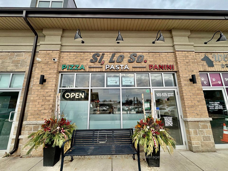 Recently built commercial restaurant unit, presenting a rare opportunity for restaurant operators, franchise groups, and hospitality to own and operate in a high-growth, high-traffic retail corridor. Strategically located within a modern plaza at the prominent intersection of Highway 27 and Highway 9, this property offers exceptional visibility, strong exposure, and consistent customer traffic in a rapidly expanding trade area. Surrounded by major national and regional anchors including LCBO, Tim Hortons, McDonald's, Petro-Canada, and Foodland, the plaza benefits from constant brand-driven traffic and a built-in customer base. The area is further supported by dense and growing residential communities, making it an ideal location for dine-in, take-out, and delivery-focused restaurant concepts. The approximately 1,200 sq. ft. unit is currently operating as an Italian restaurant and take-out component and includes existing commercial kitchen infrastructure, including a hood and exhaust system, significantly reducing startup costs and build-out timelines. The efficient layout allows for easy conversion to other restaurant QSR concept, franchise operation, specialty cuisine, cafe, or ghost kitchen. This turnkey restaurant-ready space offers flexibility for owner-operators and investors seeking immediate operational potential, brand expansion, or long-term brand growth. Ample on-site parking is available for customers and staff. Exceptional opportunity to acquire a high-visibility restaurant in a proven, high-demand location with strong traffic fundamentals and long-term upside.$4700.00 incld TMI/HST, Term in till 2028 with additional extension available w/ landlord approval.