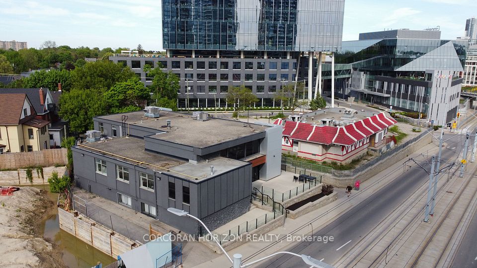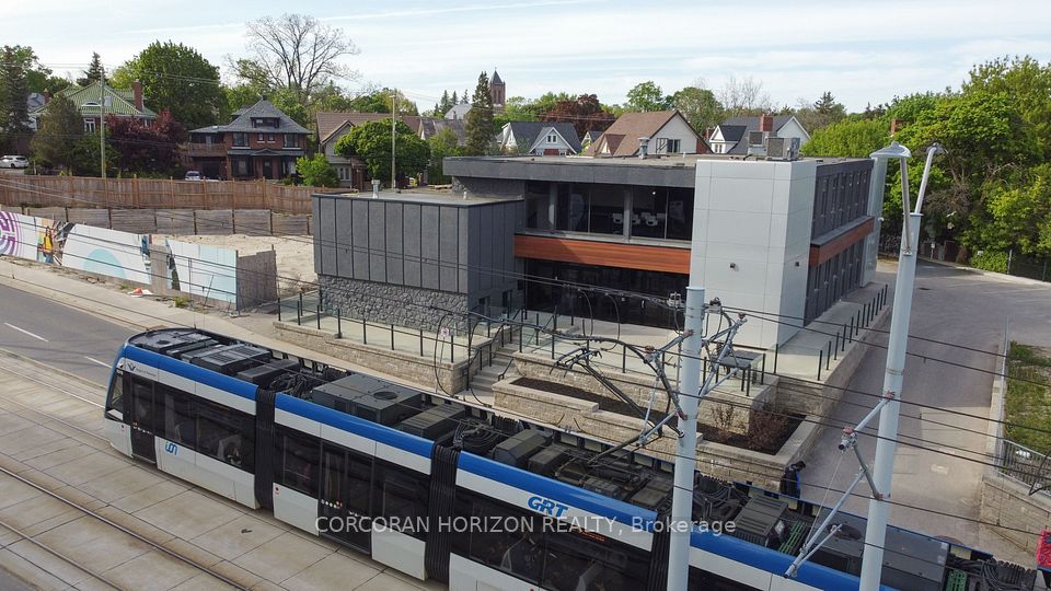 An exceptional opportunity to acquire a fully renovated, high-exposure commercial asset in the core of Kitchener's Innovation District - featuring ample on-site parking, a rare and highly sought-after amenity in the downtown core. Strategically located steps from the ION LRT, premier downtown amenities, and directly adjacent to the Google campus, this property sits at the center of one of Canada's fastest-growing tech and urban hubs. Positioned within the Strategic Growth Area (SGA-3), the property offers significant long-term upside, with zoning that supports high-density development of 25+ storeys, making it an attractive hold or redevelopment opportunity for forward-thinking investors. The building itself has been extensively updated and thoughtfully designed to support modern business operations. The main level features a vibrant, full-service café space complete with a gas fireplace, ample seating, and accordion-style bi-fold doors that open seamlessly to a private patio, ideal for client engagement, team gatherings, or hosted events. Inside, expansive windows flood the space with natural light, enhancing productivity and creating a premium work environment. The flexible layout includes multiple open-concept work areas, upgraded private offices across both upper and lower levels, five dedicated meeting rooms, and seven washrooms. Several kitchenettes, including a staff kitchen, add functionality and convenience. Designed with versatility in mind, the property can easily support a single owner-occupier or be configured for multiple tenants, offering strong income-generating potential through a mix of shared and private spaces. A rare opportunity to secure a turnkey commercial asset in a high-growth corridor with both immediate usability and future development potential.
