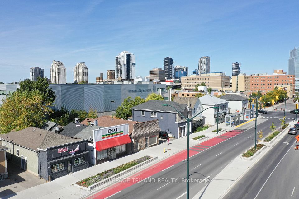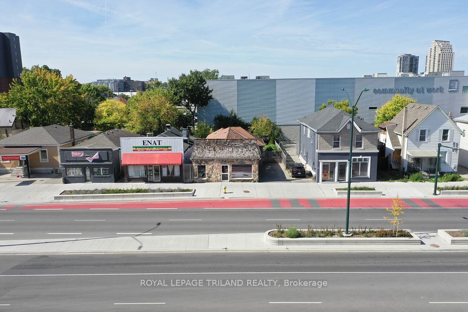 Rare opportunity in downtown London a live/work property combining prime commercial space with a beautiful residence. The front commercial unit offers outstanding exposure to over 80,000 cars daily and features huge windows to showcase your business. Zoning allows for many uses, from a bakery (equipment negotiable) to yoga/fitness, retail, or office. The lower level adds 1,485 sq. ft. of storage/workshop space for extra functionality. The back half of the building is a spacious two-bedroom plus loft home with vaulted ceilings, a large 9 x 6 bathroom with walk-in shower, bright living areas, and generous bedrooms. Step outside to a sprawling deck overlooking a landscaped, fully fenced yard with fruit trees and gardens. Parking for potentially up to four vehicles adds convenience, while recent upgrades include a newer roof, newer windows, and excellent insulation. This property offers incredible flexibility: live in the back and operate your business in the front, rent the residential side while using the commercial space, or live in the home and lease the storefront as a mortgage helper. Separate commercial taxes ($4,232.87) and residential taxes ($1,260.93) help keep ownership efficient. Seller is open to VTB, creating even more opportunity. With its unbeatable exposure, versatile zoning, and move-in-ready home, this property is ideal for entrepreneurs, investors, or anyone seeking a perfect live/work setup in a high-visibility downtown location.