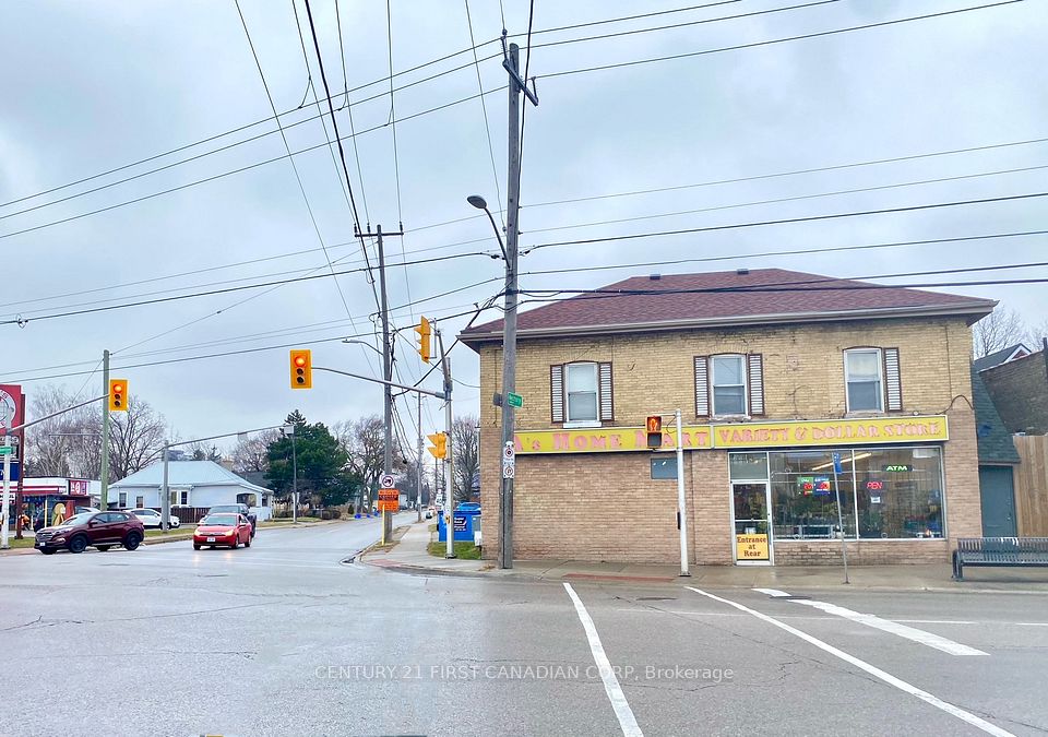 Prime 5-unit plaza on a high-traffic corner lot offering exceptional visibility and exposure along major roads! This mixed-use property presents a strong investment opportunity with flexibility for owner-users. The property features two buildings: a strip plaza with 3 fully leased commercial units providing stable income, and a separate 2-storey building which will be vacant on closing-ideal for an owner-operator to run their business on the main floor while living in or renting out the spacious upper residential unit. The building also includes a full basement, offering excellent storage space. Includes 12 on-site parking spaces for customer convenience. High traffic flow and prominent frontage make this an attractive, income-generating asset with long-term upside. Zoning is broad and permits a wide range of uses, including retail, restaurants, medical/dental, personal services, place of worship, offices, and more