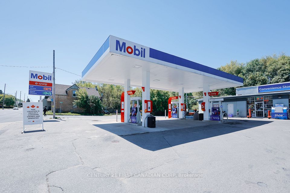 A rare opportunity to acquire a flagship Mobil-branded gas station and convenience store in one of Londons highest-traffic locations. Established in 1985, this operation offers over four decades of consistent revenue, community trust, and the strength of a globally recognized brand. Situated prominently at the signalized corner of Adelaide Street South and Thompson Street, the site benefits from unmatched visibility to more than 26,000 vehicles per day, steady walk-in traffic, and direct access to established residential neighbourhoods immediately behind the property. The convenience store spans approximately 1,200 square feet and features dual washrooms, on-site parking, and an efficient layout designed for customer flow and operational ease. Current lease terms are approximately $6,500 plus HST net per month under a cross-lease arrangement, providing stability for long-term operators. The purchase price is in addition to the cost of inventory at closing. This property represents a recession-resistant business model anchored by fuel and retail sales, with significant future upside potential through ancillary services such as lottery, ATM, foodservice, or parcel pickup. An exceptionally well-located, turnkey business in one of London's busiest corridors, this offering provides immediate cash flow and long-term security.