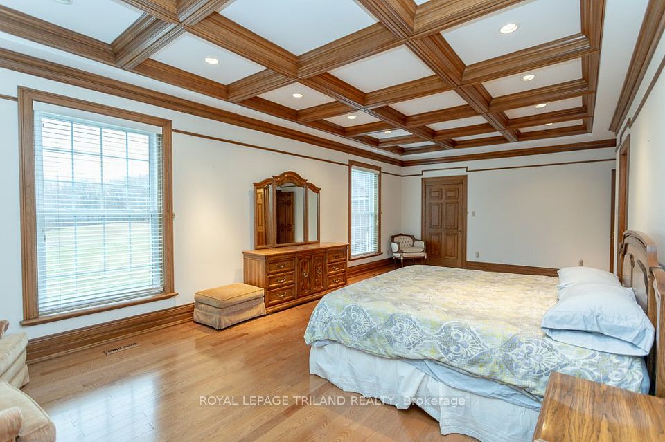 ATTENTION INVESTORS! PRIME LOCATION Directly borders Bradley Ave and Old Victoria Road directly across from London's Innovation Park - 46-acre haven, strategically positioned near the 401 Exit and minutes from London's thriving communities. A prime opportunity for investors eyeing future development or crafting a dream country retreat. With dual road frontage along Old Victoria Road and Bradley Ave, this transcends a mere farm - an enclave of potential. Currently, 35 productive acres are rented and planted in a coverage crop. Nestled within this stunning property is approximately 9000 sq. ft. Residence radiating Timeless European Design, Excellent Craftsmanship, and High-End Finishes. Handcrafted solid Oak Doors, Crown Moldings, Trim, and Flooring graceevery living space. Don't miss the opportunity to own this property located in the City of London.