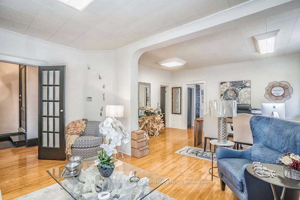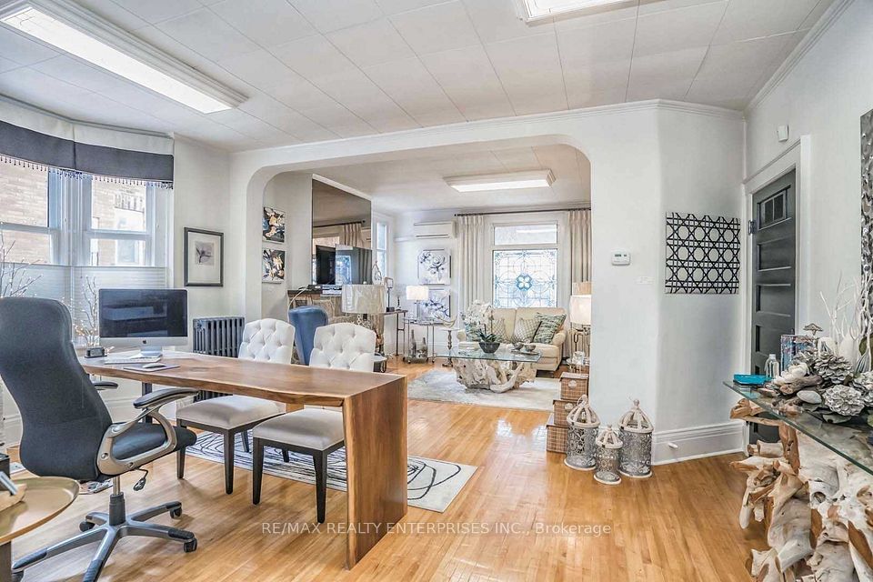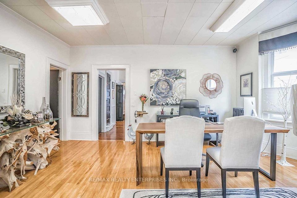 Main Floor Retail/Office Space Available In The Heart Of Old Markham Village. Zoned C2 With Many Possible Uses To Be Confirmed By Tenant, Private Double Driveway Not Mutual And No Right Of Way For Neighbours to Drive Thru. This Property Has Right Of Way Over Neighbours To The North For Easy Access in and out. Free Street Parking. Note: TMI Also Includes Heat/Hydro/Water. Multiple Entrances From The Front/Side/Back, High Ceilings, Hardwood Floors, Kitchenette,2X2 Pc Washrooms, Double man door located at rear for shipping/receiving. Photos taken before the large tree was removed in the back corner of the driveway.