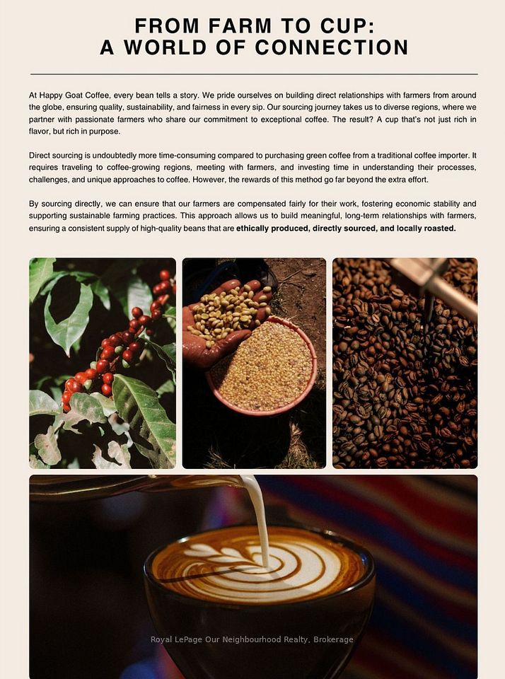 Franchise Opportunity with Happy Goat Coffee - Build a Purpose-Driven Coffee Business Centered on Community and Sustainability.Happy Goat Coffee is a growing specialty coffee brand recognized for its commitment to ethically sourced beans, direct farmer partnerships, and its innovative Zero Waste Coffee Project aimed at reducing environmental impact. The brand emphasizes small-batch, locally roasted coffee, artisan brewing methods, and thoughtfully designed café spaces that foster connection and community.Franchise owners have the unique opportunity to establish vibrant neighbourhood cafés that showcase local art, host community events, and serve as welcoming social hubs-while delivering a premium coffee experience.This is an excellent opportunity for entrepreneurs seeking to build a meaningful, values-driven business under an established and expanding brand. Additional details regarding territory availability, build-out requirements, and franchise terms are available through the franchisor upon inquiry.Please note: This offering is for the purchase of a Happy Goat Coffee franchise license only. The purchase price reflects the franchise fee and does not include costs related to equipment, leasehold improvements, construction, or site development, which will be determined separately in consultation with the franchisor.This is not an offering for an existing café location. The site will be selected and approved in collaboration with the franchisor based on market availability and the successful applicant's preferred territory. Locations may be established anywhere within Ontario, subject to franchisor approval.