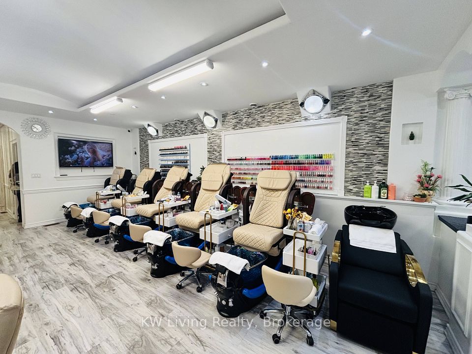 Turnkey, newly renovated nail and beauty salon in the heart of Clarkson Village, Mississauga, offering prime exposure in a high-traffic plaza on Lakeshore Road. This stylish, modern salonis fully equipped with 5 manicure stations, 5 pedicure chairs, 6 hair stations, 1 hair washing station, 1 head spa station, 6 facial/massage beds, 1 washroom, 1 bathroom, 1 changing room, 1kitchenette, on-site laundry, and 1 staff room, with a spacious basement easily adaptable for additional beauty or wellness services. Boasting a long-term lease with affordable rent of $3,700/month, this well-established salon presents an exceptional opportunity for beauty professionals or entrepreneurs to step into a thriving business in a high demand area.