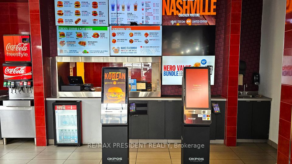 INDIAN RESTAURANT, BURGER, PIZZA, THAI, CHINESE AND MANY OTHER NON COMPETING USES ALLOWED.. ... GOLDENT OPPURTUNITY...CAN BE REBRANDED TO ANY KIND OF NON-COMPETING RESTAURANT or ANY OTHER USE in a Busy Plaza with LONGOS, BST BUY, CHUCK E CHEESE AND many Big Stores. Lots of traffic in the Plaza....Location Location Location. Currently, operating as Hero Burger. Very Large Kitchen, 11 Foot Hood , 3+1 Washrooms, Walk-In Freezer and Fridge. LANDLORD WILL CONSIDER BRAND NAME INDIAN RESTAURANTS ALSO. 3 + 5 years lease remaining Turnkey Operation, Great Exposure, High Traffic Area and Visibility Fabulous Set Up of app 2000 sqft Ambience Galore, Large Kitchen with 13ft Hood. Busy location Low Rent. SUBDIVISION OF THE UNIT ALSO POSSIBLE, IT WILL BE A SEPARATE UNIT WITH AROUND 1000sqft. Many options available, you can take the HERO Certified Burger Franchise too or Open your own Burger Joint. Lease for 2026 is app $10,000(tmi included) + HST