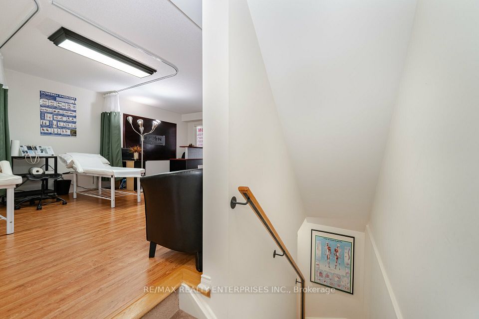 END YOUR COMMUTE! RARE LIVE/WORK SPACE IN MISSISSAUGA. Tired of the daily drive? This unique live/work unit offers the perfect opportunity for professionals, entrepreneurs, and business owners who want to run their business and live in the same space or rent out upstair for additional income. Ideal for health professionals, lawyers, accountants, administrative offices, or any profession needing office space with the convenience of a home nearby, this property eliminates the need for a separate lease while providing a professional and private work environment with a RESIDENTIAL MORTGAGE. RESIDENTIAL SPACE: Spanning two levels, the spacious three-bedroom plus den condo townhouse offers comfortable living with three well-appointed bathrooms and two private balconies that provide outdoor space and a place to unwind. Large windows allow natural light to flood the space, creating a bright and airy atmosphere. Whether you choose to live here or rent it out, the flexibility of this setup makes it a smart investment. Opportunity for a residential mortgage adds even more appeal. COMMERCIAL SPACE: The ground and lower levels are currently set up as a clinic, making them ideal for a retail business, office use, or a medical facility. Two separate entrances allow for smooth business operations and easy client access. The space includes ample storage, two bathrooms, and extra owned designated parking spaces, ensuring convenience for both business owners and customers. With visibility from Thomas Street, the unit offers a great balance of exposure and privacy. PRIME LOCATION: Located in a highly desirable area of Mississauga, this property is close to a variety of amenities and offers excellent highway access, making it convenient for both business and personal needs. Whether youre looking to streamline your work-life balance or invest in a versatile property with income potential, this rare live/work space is a fantastic opportunity. Dont miss out, schedule a viewing today!