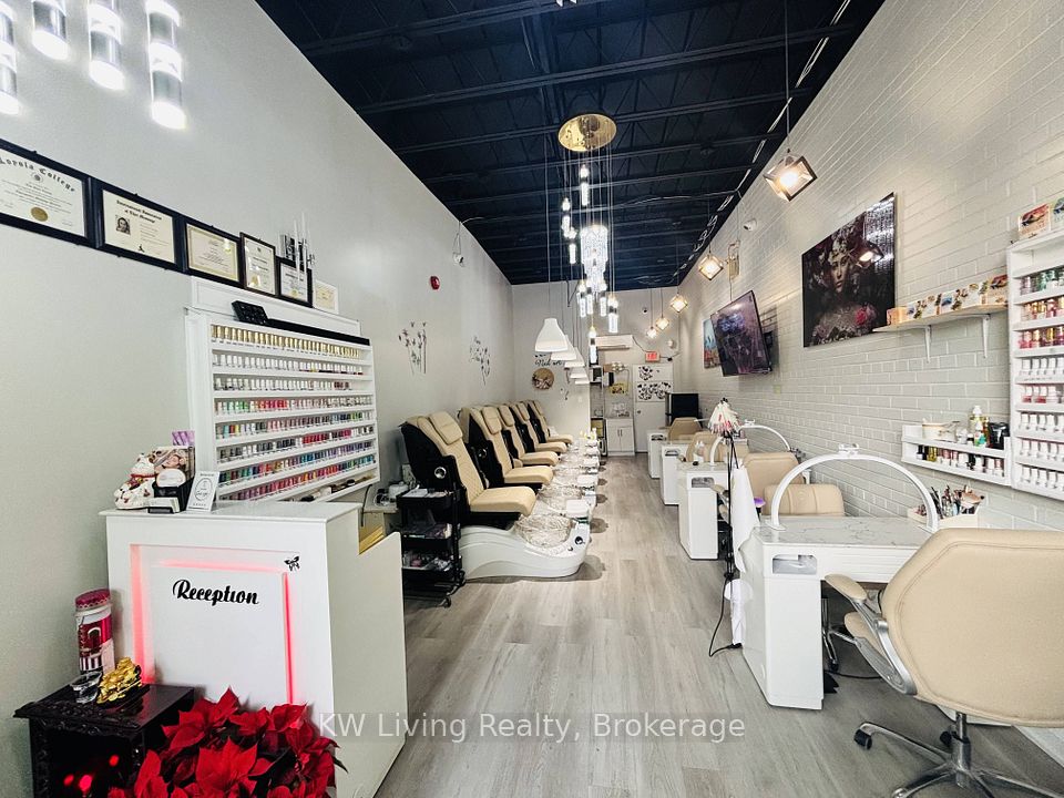 Recently renovated nail salon in the heart of Port Credit featuring high ceilings, reception and waiting area, 5 manicure tables, 5 pedicure chairs, 1 washroom, and 1 waxing room on the main floor. Fully finished basement with 3 waxing rooms, staff room, and washroom, ideal for additional esthetic services, head spa, or massage. Long lease term with affordable rent. Ample front and rear parking. Prime walkable location surrounded by condos, shops, cafes, waterfront attractions, strong foot traffic, loyal clientele, and excellent transit access.