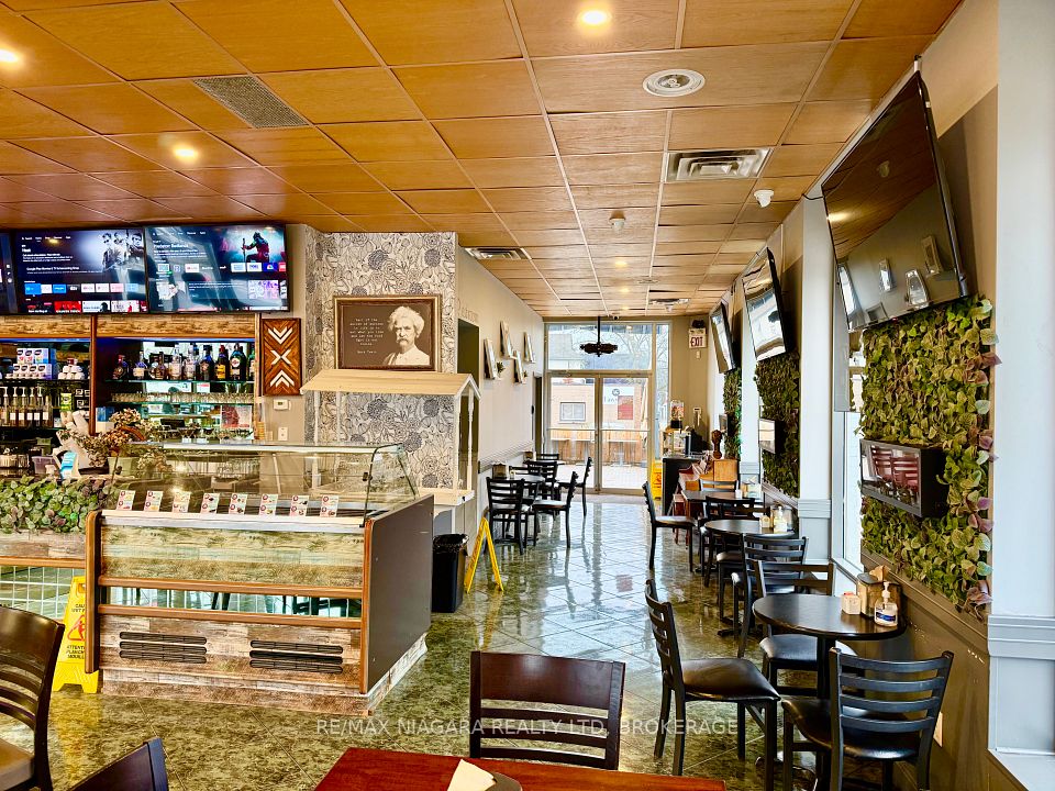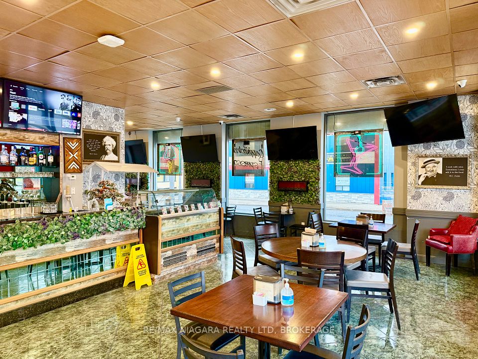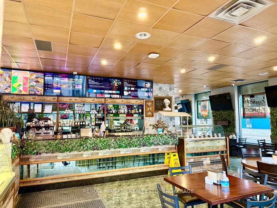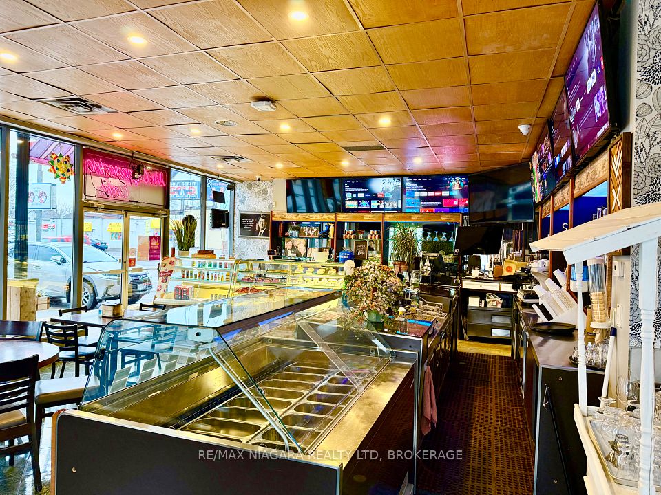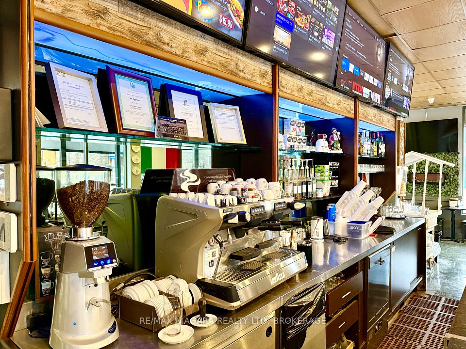 DEAL OF THE CENTURY - TURNKEY Mr. CAPPUCCINO ICE CREAM, COFFEE BAR & BISTRO: University District - BUSINESS IN THE HEART OF NIAGARA FALLS! Exceptional opportunity to acquire a fully built-out, fully licensed café / coffee & pastry shop in one of Niagara Falls' most strategic, high-traffic locations. Sale of business only (no property)-ideal for owner-operators or investors seeking immediate upside. Located downtown Niagara Falls, steps from the University of Niagara Falls, minutes to the U.S. border, and just 1 km from the Falls. Surrounded by tourism, transit, students, casinos, Airbnbs, parks, banks, and major attractions. Walking distance to bus and train stations ensures steady year-round foot traffic.The space offers 1,725 sq. ft. with 30 indoor seats and 20 outdoor patio seats, featuring a new interlock brick patio, wooden deck, and gazebo-perfect for peak tourist seasons and events. Fully LCBO licensed, allowing for alcohol service, private functions, and extended hours. Situated on a corner lot with commercial zoning, designated in the Official Plan, and within a Major Transit Station Area. 40+ shared parking spaces available, with minimal parking demand from neighboring businesses. Significant capital improvements completed, saving time and cost: Fully equipped commercial kitchen that does not currently require a hood range, Second-floor office area with washroom, 3 Brand-new washrooms, New plumbing and drainage system, Tankless hot water heater with meter, Additional electrical panel for future expansion, Professionally built patio, deck & gazebo. Rental items attached. A true turnkey operation in a location that cannot be replicated. Ideal for café operators, bakers, restaurateurs, or investors looking to capitalize on Niagara Falls' booming tourism and student market. Rare opportunity-act now.