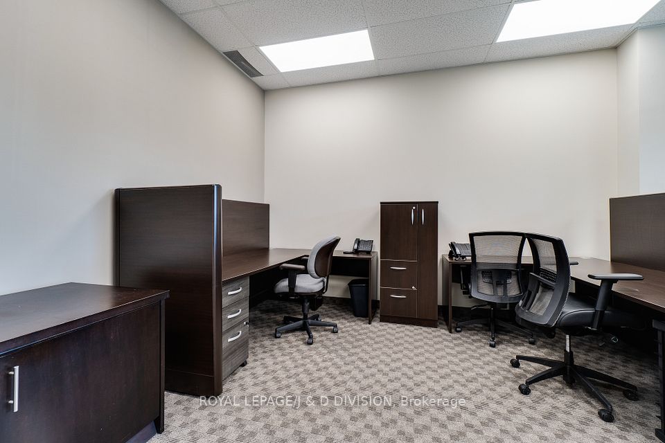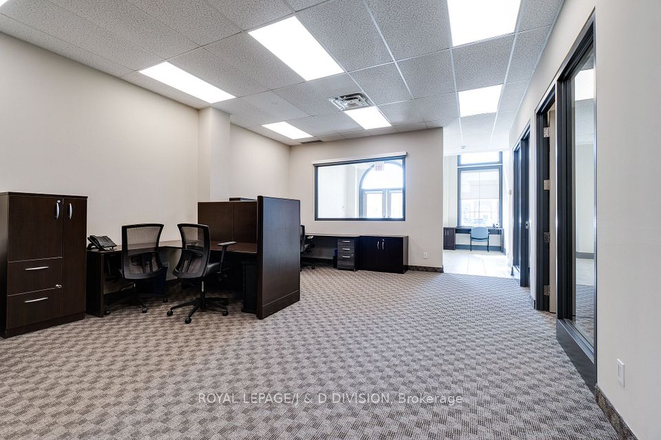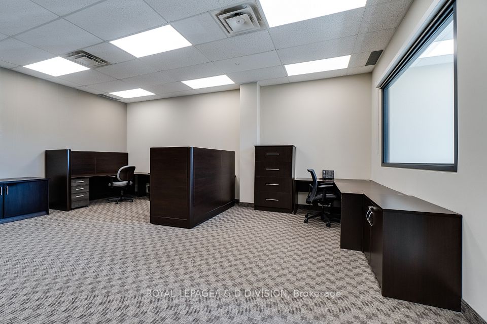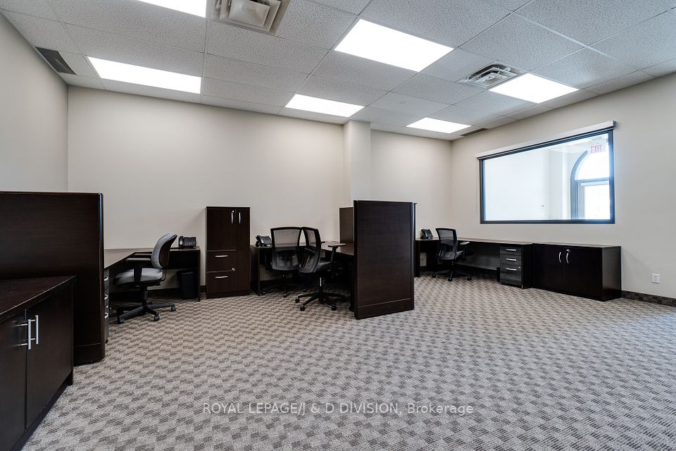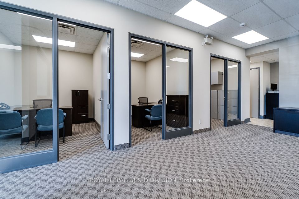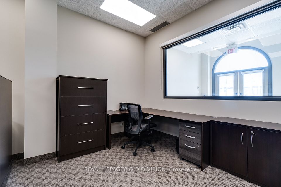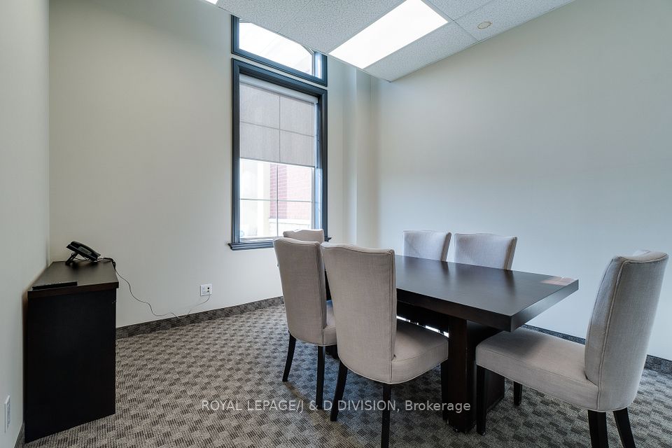 Prime main level office unit in one of South East Oakville's most prestigious office complexes. Located in the Maple Grove Corporate Centre. This unit is in excellent condition with a ideal open floor plan featuring board room/meeting room, offices, kitchen, and washroom. Well maintained complex with high ceilings and large windows bringing in a abundance of natural light. Zoned for medical, professional office, wellness/beauty spa, any many other uses. Just under 1280 sqft of space, office furniture is included. Excellent location boarding the affluent neighbourhood of South East Oakville. New rooftop HVAC unit installed Fall of 2024. Lot's of free surface parking and minutes to Whole Foods, Oakville GO, and HWY 403.