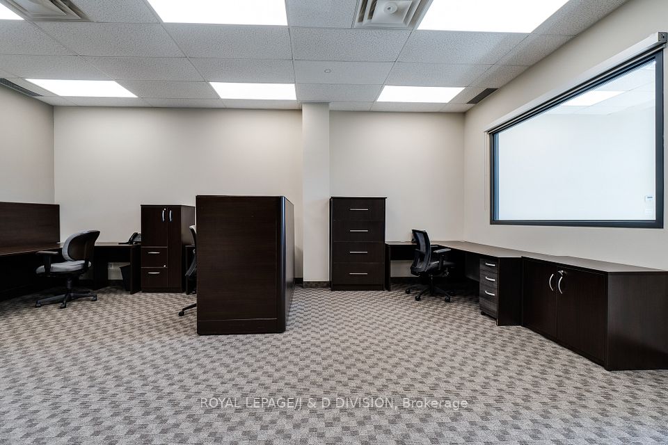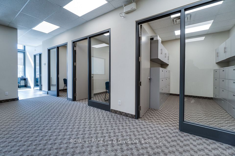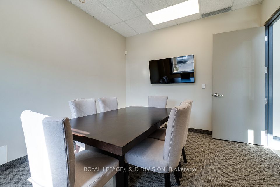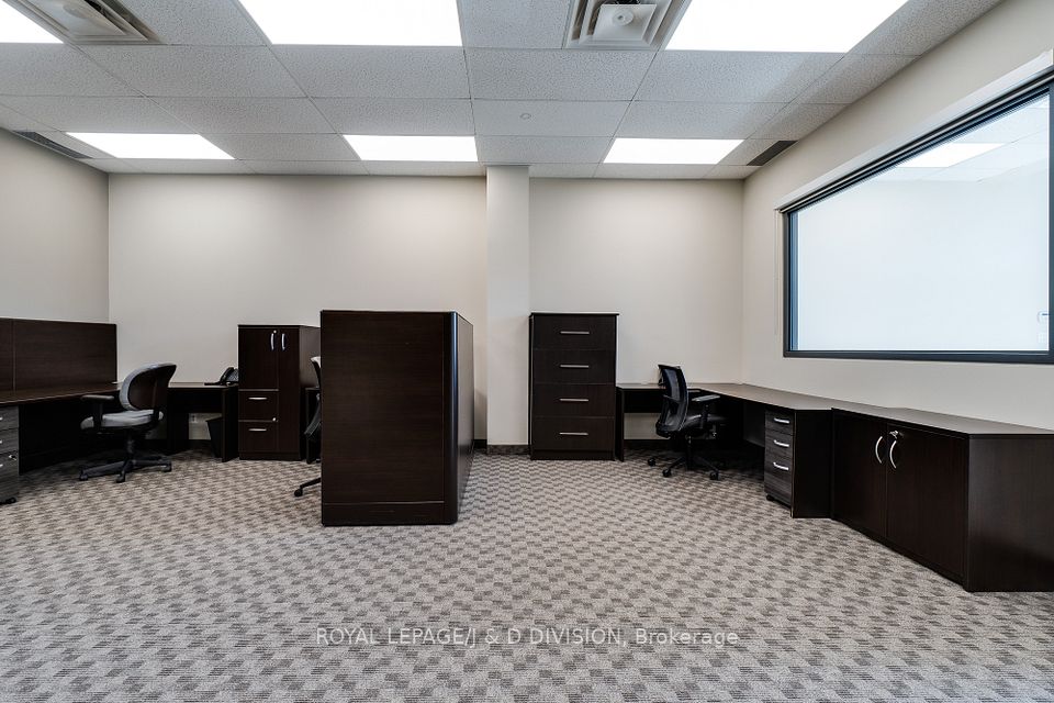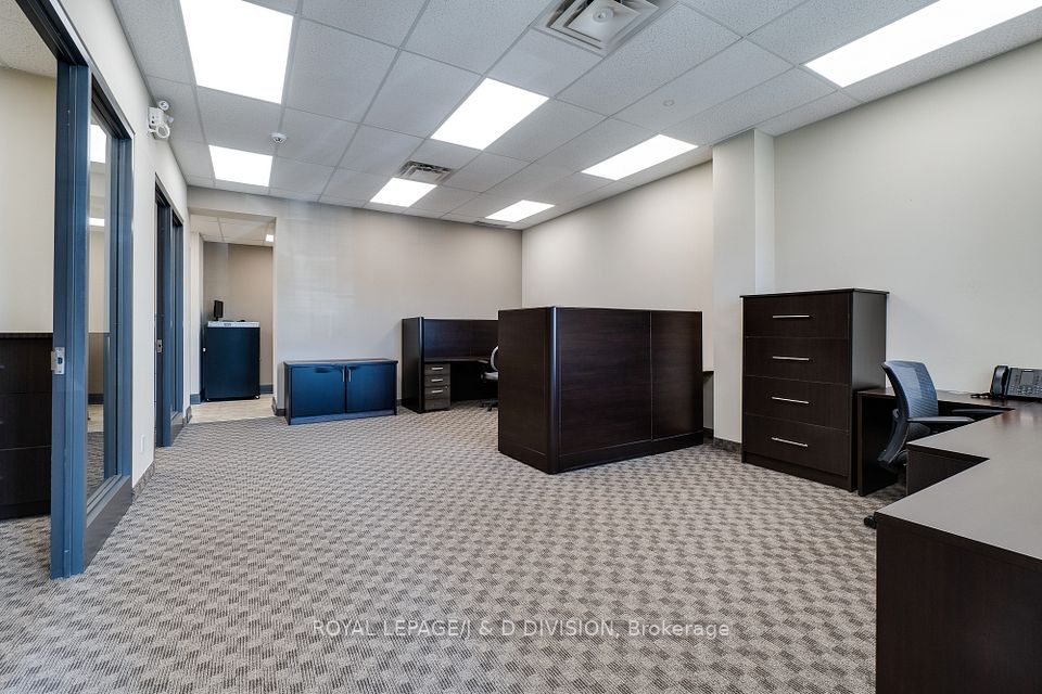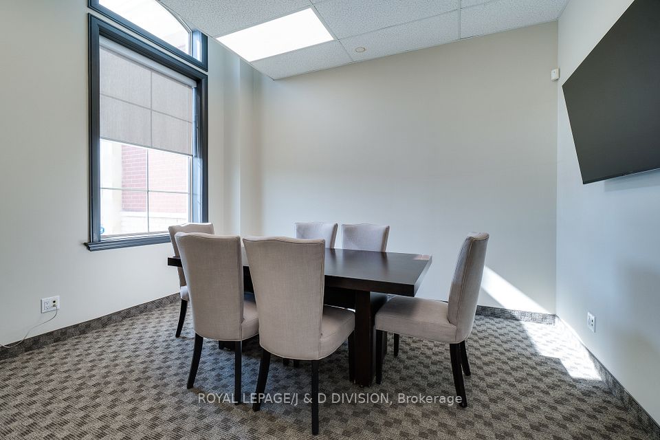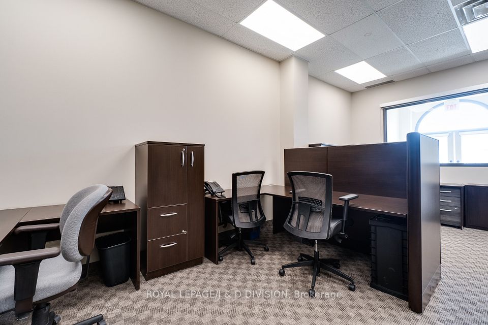Prime main level office unit in one of South East Oakville's most prestigious office complexes. Located in the Maple Grove Corporate Centre. This unit is in excellent condition with a ideal open floor plan featuring board room/meeting room, offices, kitchen, and washroom. Well maintained complex with high ceilings and large windows bringing in a abundance of natural light. Zoned for medical, professional office, wellness/beauty spa, any many other uses. Just under 1280 sqft of space, office furniture is included. Excellent location boarding the affluent neighbourhood of South East Oakville. New rooftop HVAC unit installed Fall of 2024. Lot's of free surface parking and minutes to Whole Foods, Oakville GO, and HWY 403.