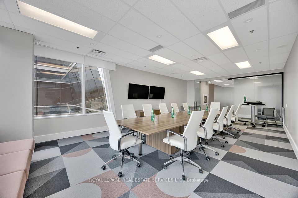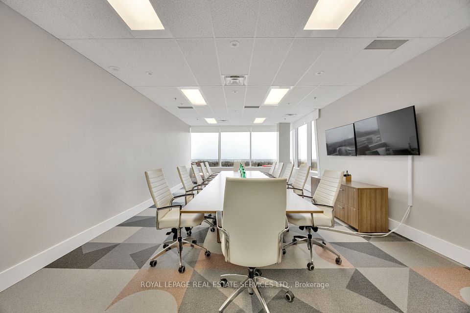 Exceptional opportunity to lease a fully built-out, professional corporate office space designed to impress. Featuring a stylish and welcoming reception area, the layout includes a spacious boardroom with seating for 12 and integrated audio/video conferencing capabilities-ideal for client presentations and team collaboration. The premises offer two executive corner offices with expansive lake and city views overlooking Toronto and Mississauga, complemented by five bright south- and east-facing perimeter offices and three additional interior offices. The space is thoughtfully designed with functionality in mind, including a dedicated IT/HR office, ample storage and filing areas, a coat closet, and a well-appointed lunchroom with kitchen facilities. A separate staff entrance provides convenient access for employees. Additional features include unlimited surface parking, designated guest parking, and electric vehicle charging stations. This is a turnkey solution for businesses seeking a polished, efficient workspace in a premium setting. The building is both BOMA BEST and WELL certified, reflecting a strong commitment to sustainability, energy efficiency, and occupant health and wellness. Recent capital improvements include newly activated, modernized lobby spaces that create a strong first impression, along with upgraded washroom facilities and access to a professionally designed on-site tenant lounge. The property offers direct access to public transit and is surrounded by a wide range of nearby amenities, including dining, retail, and services. Ideally situated with convenient access to the QEW, Highway 403, and Highway 407, the location provides excellent connectivity for both employees and clients.
