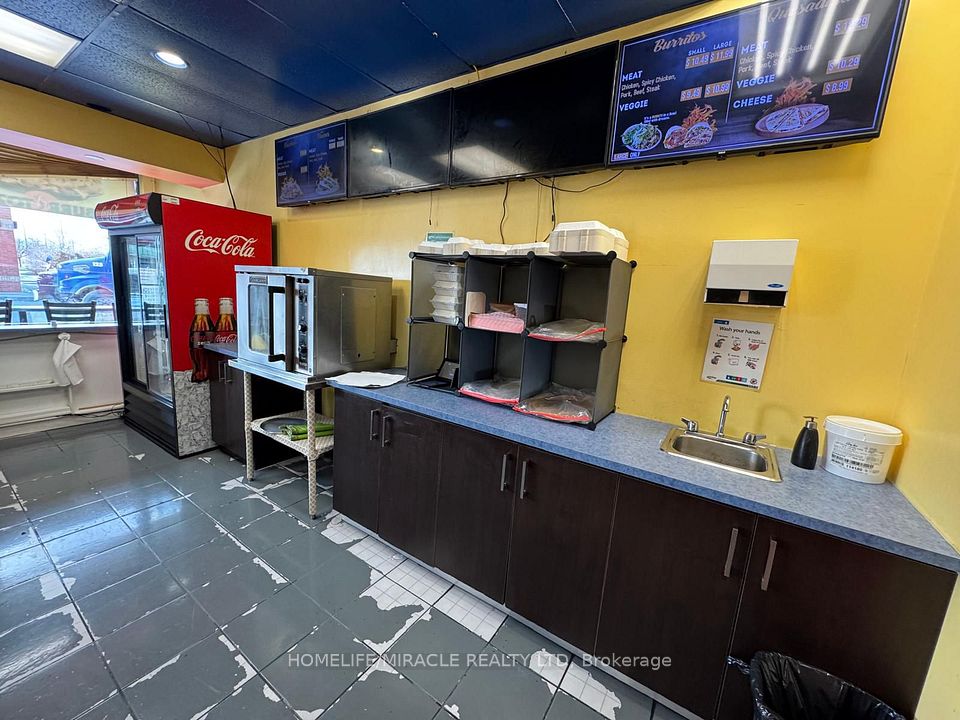 Turnkey Opportunity to Own Burritoz Fresh Mexican Grill, Be your Own Boss, no franchise Fee, Ideal for First time Buyer, Monthly Lease $ 3,352 Including TMI and HST, Big Refrigerator bought within 02 years, All other appliance in good working condition Excellent location on high Traffic area of Tim Hortons, Wendy's, Subway and Ford Assembly Plant, 17 People seating Facility, Ready for Immediate Possession, Don't miss this chance to step into a profitable business, No Hood, Buyer can installed as requisite