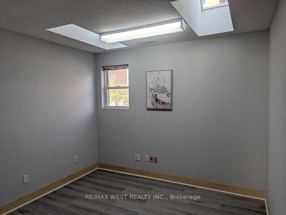 Immaculate upper floor office space located steps to Downtown Oakville. Recently renovated and updated vinyl flooring throughout. Excellent layout with 5 private offices, 1 boardroom, 1 reception area and 1 shared open office space. Includes one 4-piece washroom with shower/tub, kitchenette with fridge. Bright windows throughout the space.