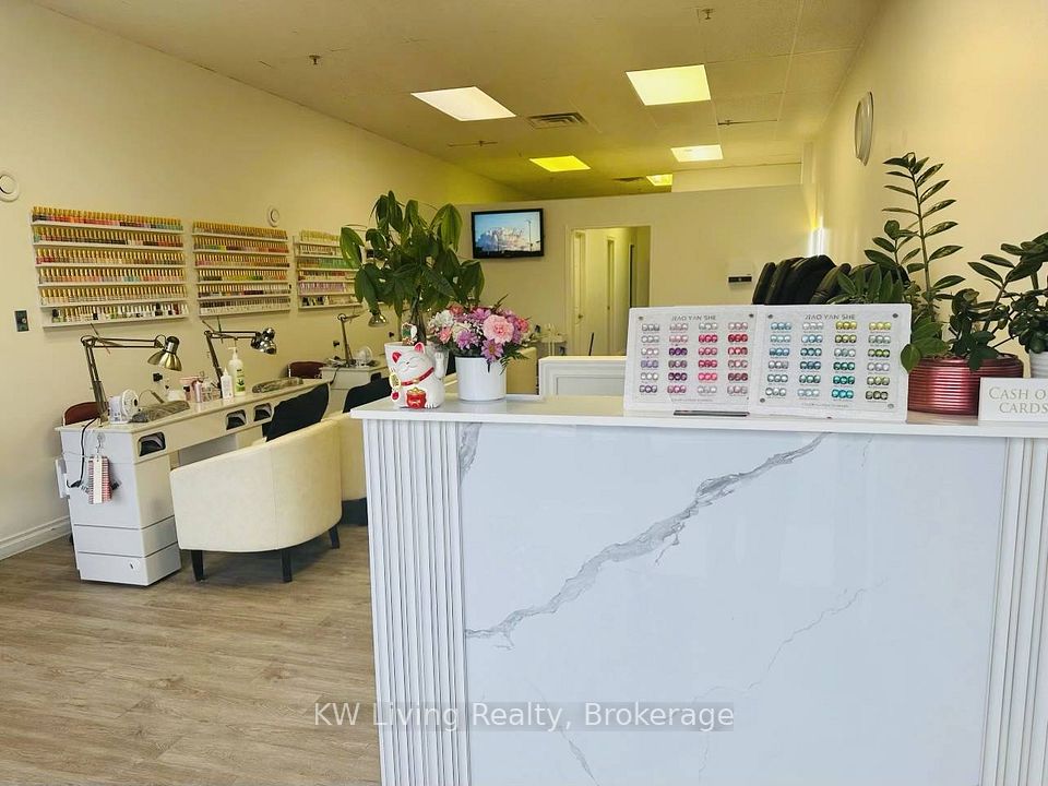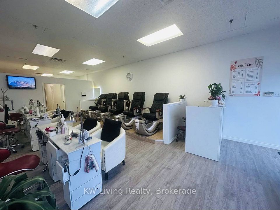 Turnkey nail salon for sale in a busy, high-traffic plaza with ample parking, co-tenanted with Shoppers Drug Mart, Pet Valu, Subway, Pizza Pizza, Arby's, along with other restaurants, medical offices, and professional services, ensuring strong and consistent foot traffic. The well-appointed space features 5 manicure tables, 5 pedicure chairs, 2 treatment rooms, a staff room, a washroom, and an en-suite laundry area. Attractive lease at $4,000/month, including TMI and HST, secured until December 2029 with a 5-year renewal option-ideal for an owner- operator or investor seeking a stable, established business location.