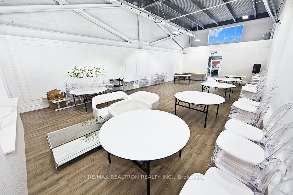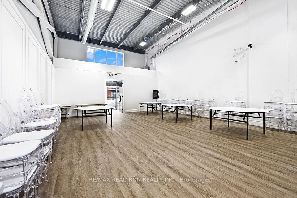Currently operating as a successful event venue - beautifully crafted, cozy, spacious area that can host gatherings, meetings, parties. Positioned directly on high-traffic Taunton Road, Oshawa this property benefits from over 32,000 vehicles passing daily, ensuring maximum exposure and visibility. Northwood Business Park, this modern, turnkey unit is ideal for businesses seeking a professional, for all sort of businesses. 9-ft custom interior doors and 20-ft ceilings create an open, upscale atmosphere. Statement lighting and two-story front windows provide abundant natural light. 10-ft front double doors for easy access. HVAC system with rooftop A/C and furnace (owned), electrical (200-amp), natural gas. 600 sq ft mezzanine (permits required).Zoning allows for a wide variety of uses including restaurants, professional offices, industrial trades, gyms, studios, or showrooms. Over $150,000 invested in renovations and upgrades, move-in ready for a range of business types.