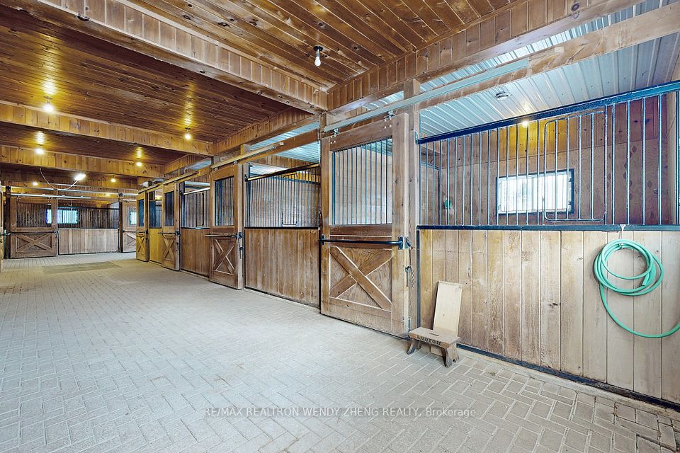 Only 10 Minutes From The 407, This Property Offers The Best Of Both Worlds with A Rural Lifestyle And Access To Toronto In Under An Hour, Situated Behind A Towering 8' Hedge s Roadside Gates Is An Equestrian Layout Ideal For Both A Private Or Boarding Facility. Impressive Main Dutch master's Barn With Arena Includes German Fiber Footing. Second Barn with Additional8 stalls Garage& Spacious finished Loft; Outdoor ring With Drainage, several Paddocks.