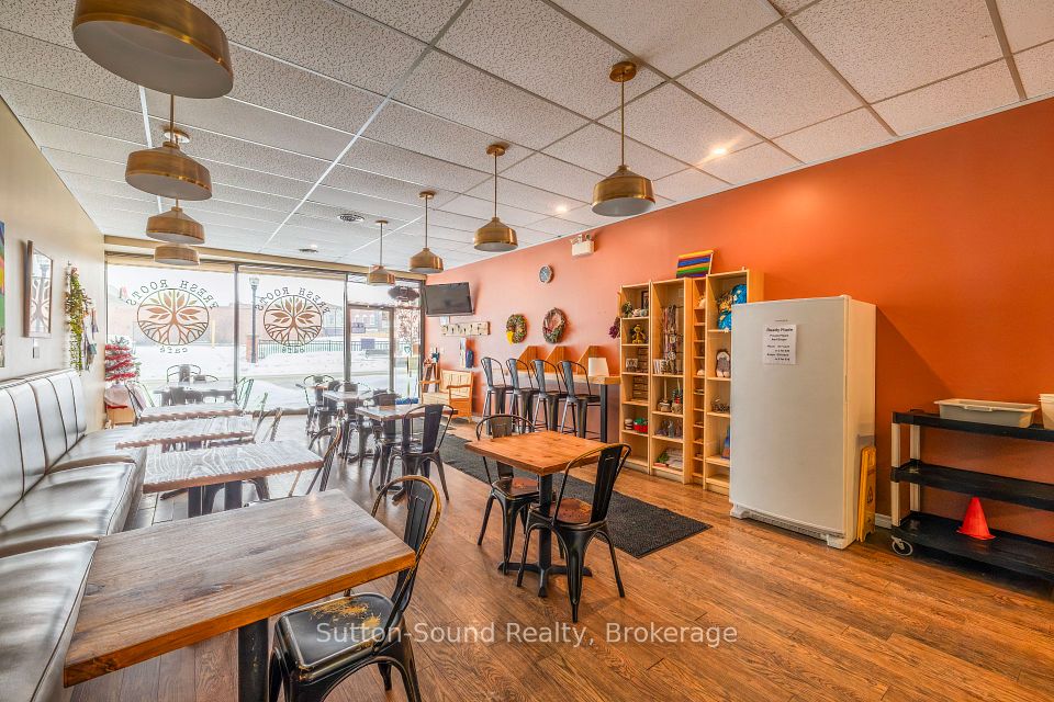 Ideally located in Owen Sound's sought-after Downtown River District, this versatile commercial property offers an excellent opportunity for both owner-users and investors. The property is currently occupied on a month-to-month basis, providing flexibility, and the existing café tenant has expressed interest in remaining, offering potential continuity of income. The building features two main Street entrances, allowing for the possibility of separating the space for multiple users or mixed-use configurations. The current layout includes a separate office component with its own main Street entrance, consisting of three offices, a large meeting room, washroom, and storage area. (See attached Floor Plans - measurements are approximate.) The café portion offers seating for approximately 24-30 patrons, two washrooms, an abundance of storage, and a large open rear area that includes three additional offices, providing flexibility for expansion or alternative uses. Additional features include two rear accesses to 1st Avenue East, parking for four vehicles, and a loading dock, enhancing functionality for retail, food service, or service-oriented operations. Note: This property is being sold in conjunction with 1024 2nd Avenue East, presenting a rare opportunity to acquire a significant presence in one of Owen Sound's premier downtown commercial locations.