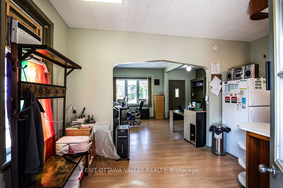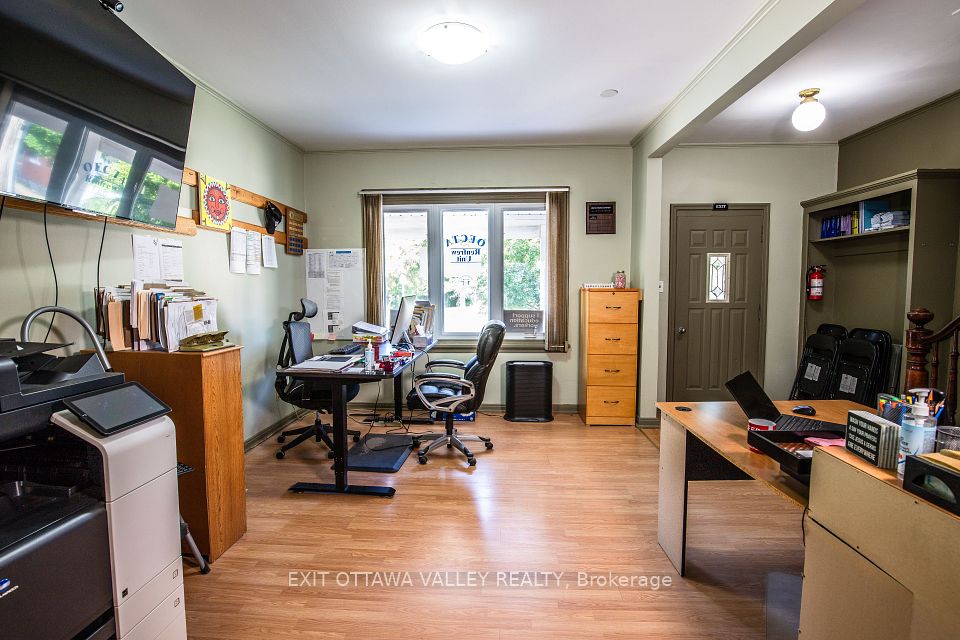 Versatile Commercial property with income potential in central Pembroke Location. Offering exceptional potential, this property is currently being used as office space. The main building includes a bright main floor with full kitchen as well as two spacious rooms and full bathroom on the upper level. A functional layout ideal for a variety of business or professional uses. Attached to the main structure is a separate one bedroom apartment in need of renovation-perfect for generating additional income or creating an on site residence. At the rear, a large storage space is already rented out, offering built-in revenue. Situated in a high visibility, central Pembroke location, the property features a very large 110 by 33 foot parking lot. This allows for ample on-site parking and easy access for clients or tenants. Whether you're an investor, small business owner, or developer, this property offers a rare combination of work, live-in and lease potential.