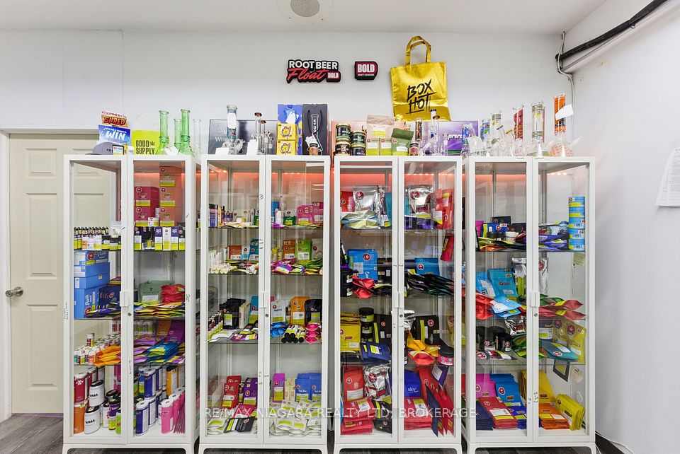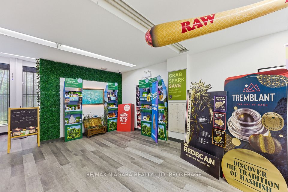 Exceptional opportunity to own Green King Cannabis, a well-established cannabis retail business located in the heart of Downtown Port Colborne. Strategically positioned at the busy signalized intersection of Elm Street and Clarence Street West, this prime corner location benefits from strong daily traffic, excellent visibility, and convenient access for customers. The retail space offers approximately 1,600 sq ft on the main floor, plus an additional 561 sq ft loading area, providing a functional layout for retail operations, storage, and inventory management. The plaza features 39 on-site parking spaces, ensuring easy customer access and consistent foot traffic. Green King Cannabis is surrounded by strong national and local anchor tenants including 7-Eleven Gas Bar, Pizza Hut Express, and Port Optical, with additional nearby amenities such as Food Basics, Subway, LCBO, Shoppers Drug Mart, and Canada Post, creating a highly active retail hub that continually draws customers to the area. This is an outstanding opportunity for an entrepreneur or investor looking to step into the rapidly growing cannabis retail sector with a high-visibility location in a thriving Niagara Region community. Business is being offered without real estate, allowing a buyer to acquire an established operation in a desirable commercial plaza location.
