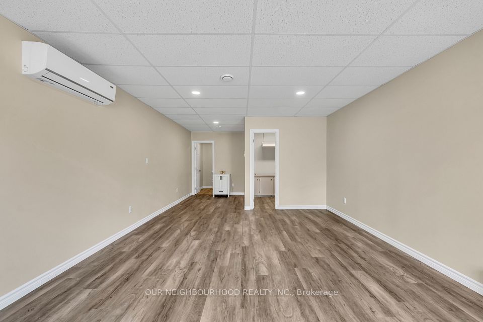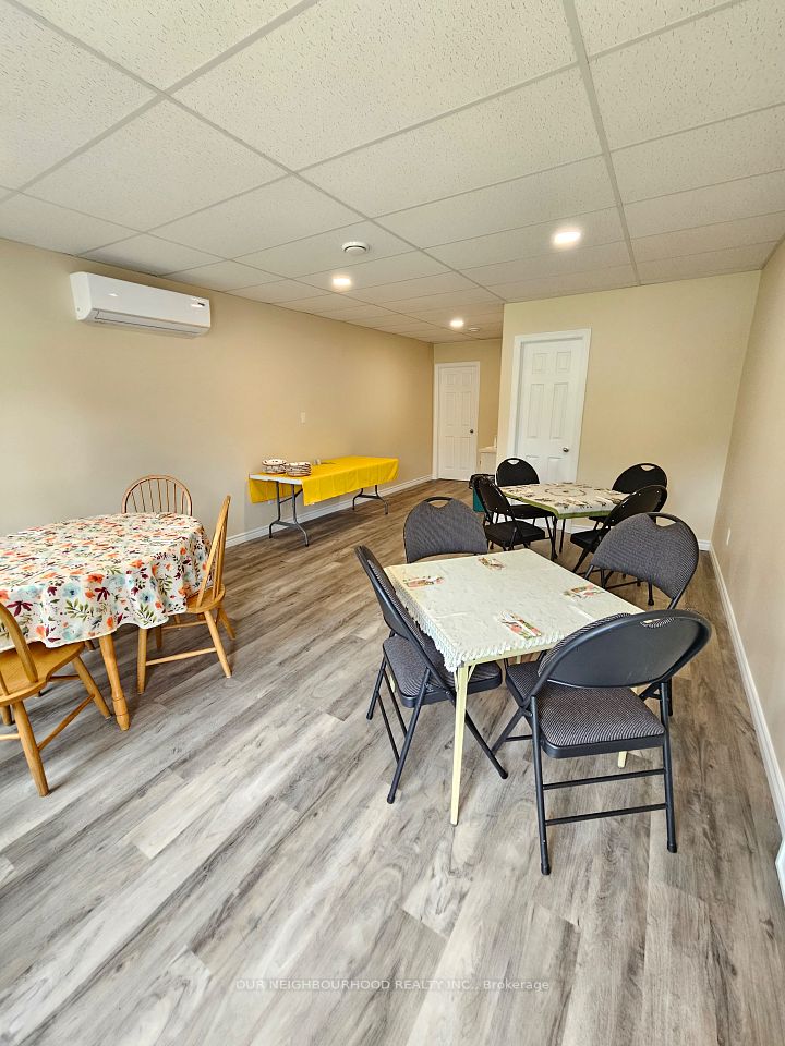 A newly renovated commercial 400 sq ft office space with an open floor plan and a private bathroom is both versatile and convenient. Completely separate from the other business, has its own entrance. Being close to the 401 and high-traffic areas offers excellent visibility and accessibility for potential clients or customers. With such a setup, you could consider various uses. The possibilities are endless. 1 year lease with possibility of extension. 3 other business in the same building